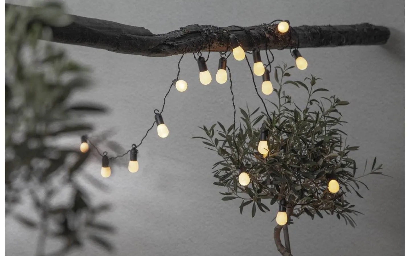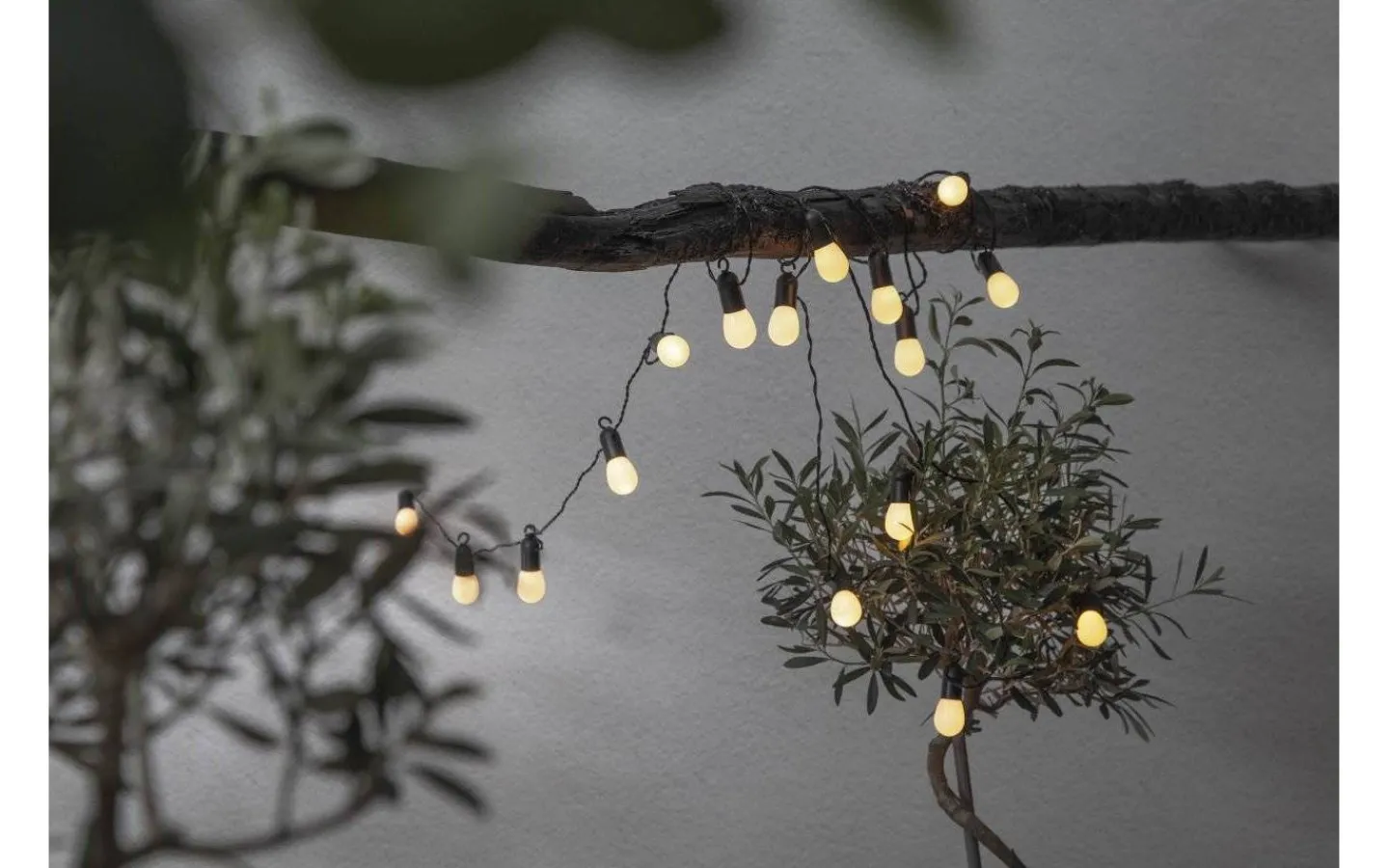 Lamporna avger ett dekorativt, varmvitt ljussken. Slingan är 4,5 meter lång och det är 30 cm mellan varje lampa. Ljusslingan levereras med 5 meter lång anslutningskabel med transformator och stickkontakt för vägguttag.