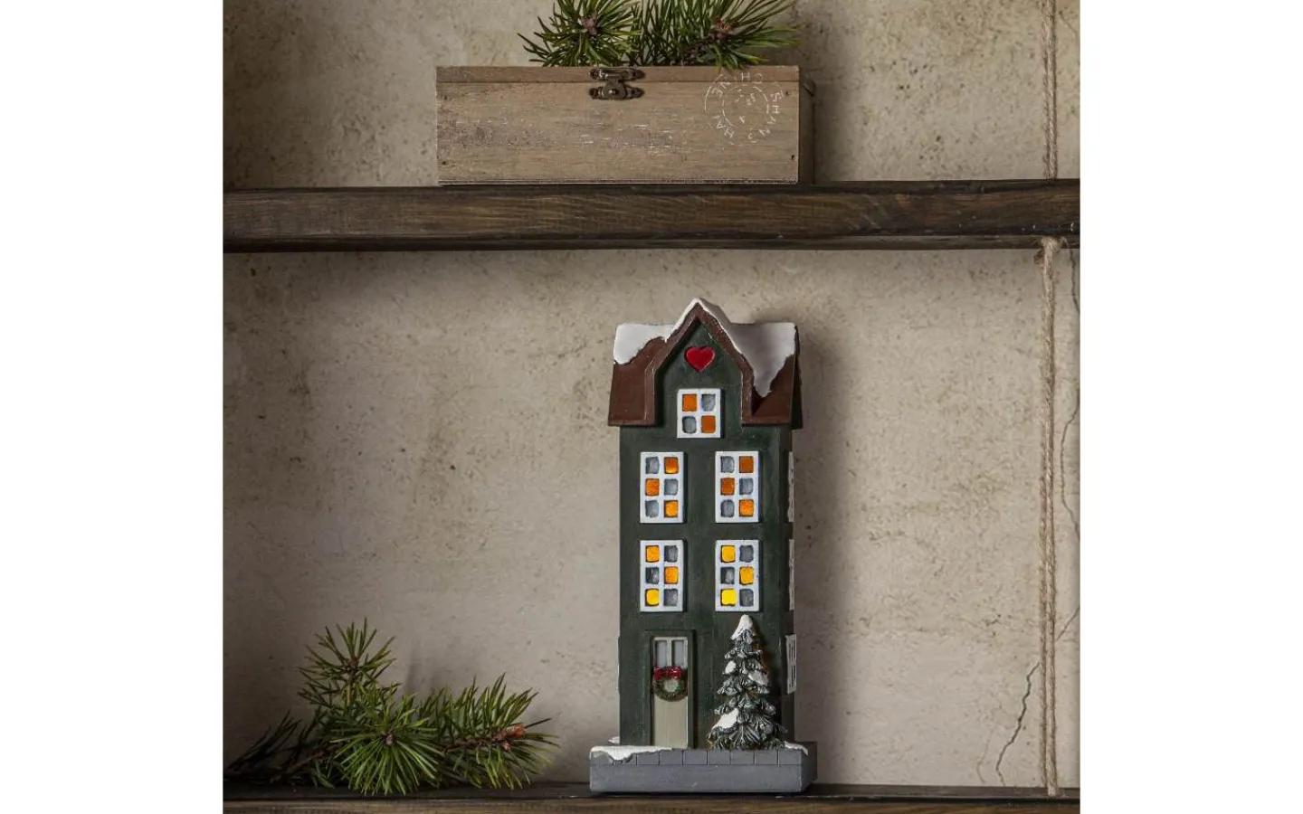 Hus från Star Trading är en charmig batteridriven juldekoration. Huset är vackert utformat med detaljer som snötäckt tak, en julgran vid dörren och lysande fönster, vilket ger en hemtrevlig och festlig känsla.