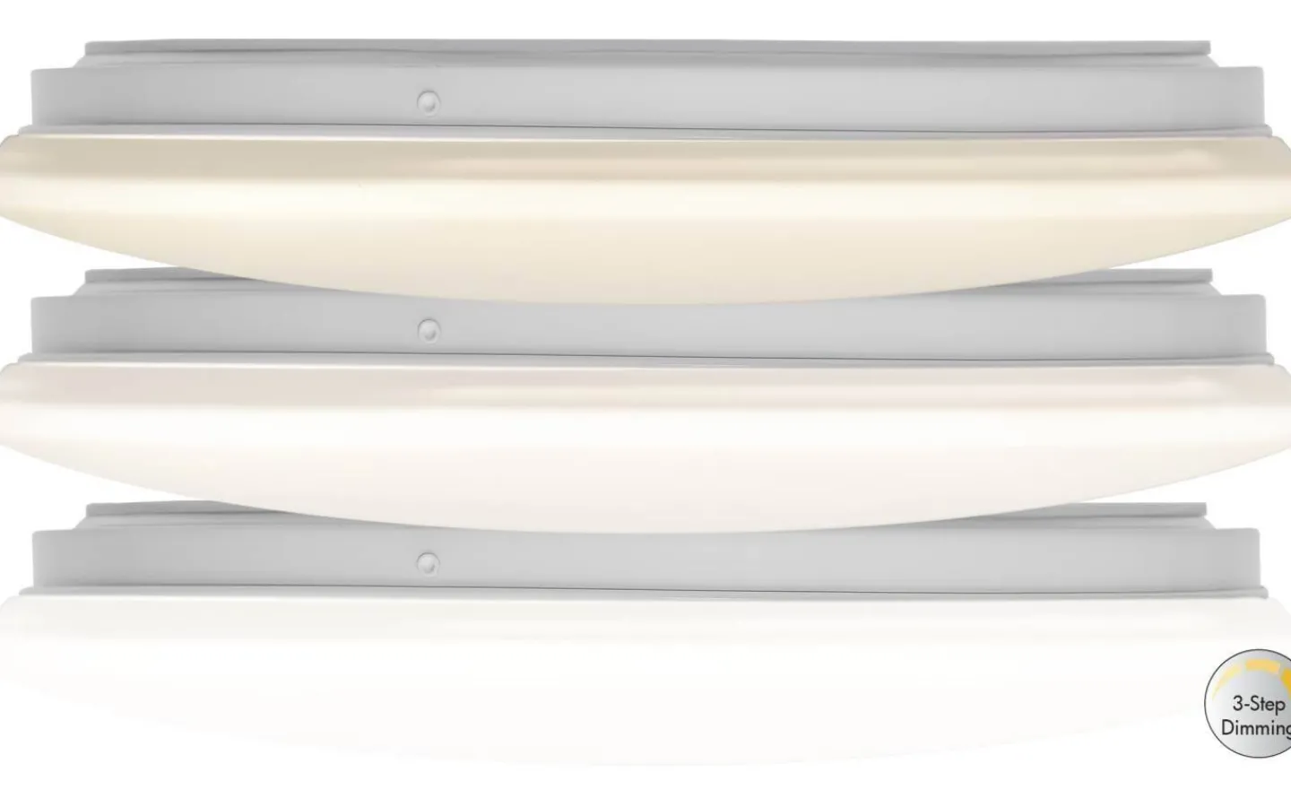 LED Plafond med 3-stegs klick funktion. Plafonden tänds på lägsta nivå och de nästa 2 klicken ger högre lumen. Den inbyggda minnesfunktionen kommer ihåg senast valda dimningsposition nästa gång du tänder den.