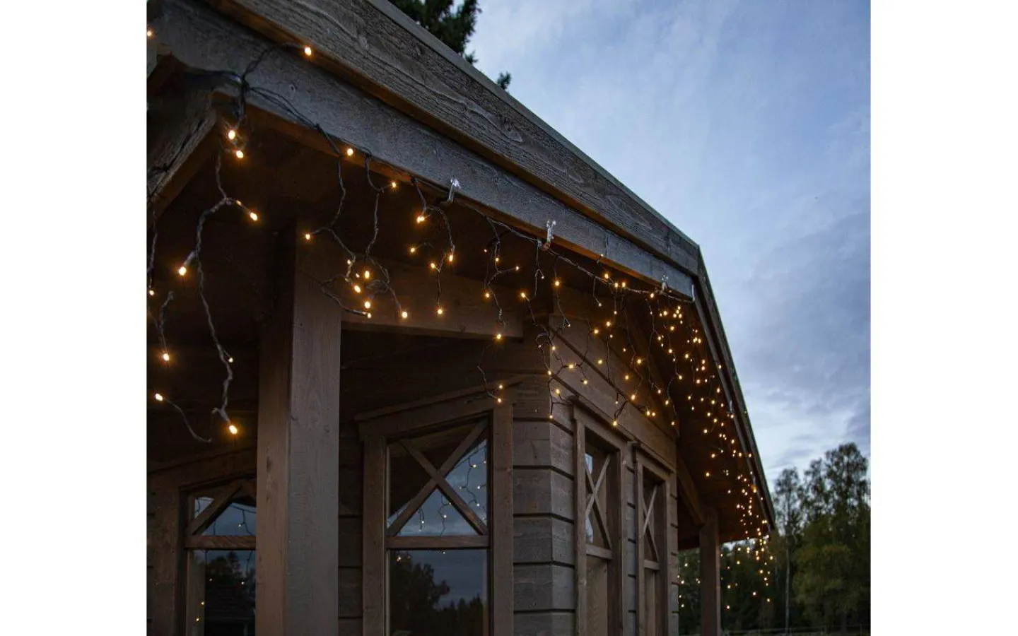 Istappsslinga med 960 LEDljuspunkter med vackert varmvitt ljussken. Slingan är ca 24 meter lång med istappar i tre längder, 15, 35 och 55 cm. Perfekt för dekoration i din trädgård eller på huset. Shiny Warm White är en prisvärd basserie.