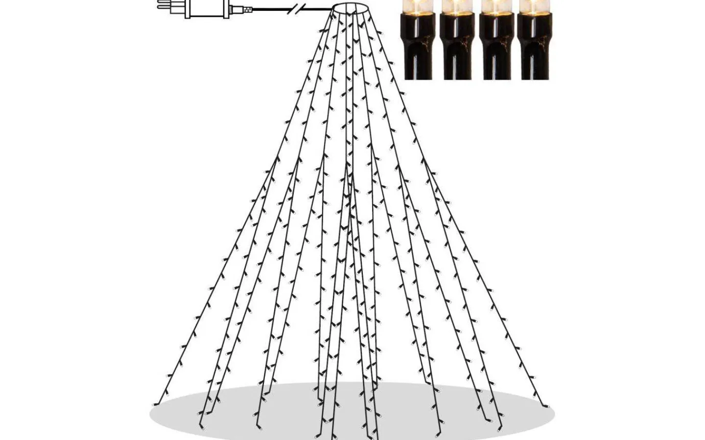 Julgransslinga med 360 LED lampor med vackert varmvitt ljussken. Slingan är ca 2 meter hög med 8 strängar som delar sig för att få en jämn spridning av lysdioderna. Perfekt för din julgran både inne och utomhus. Shiny Warm White är en prisvärd basserie.