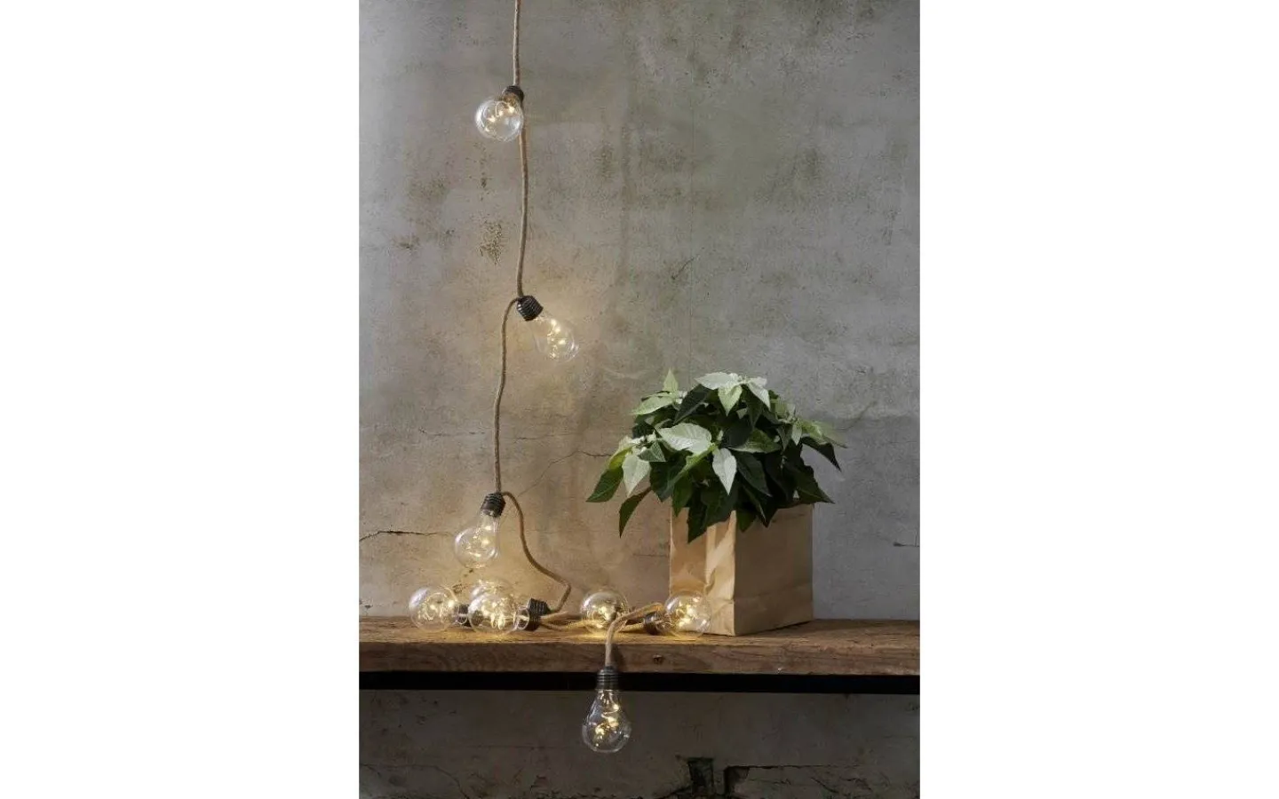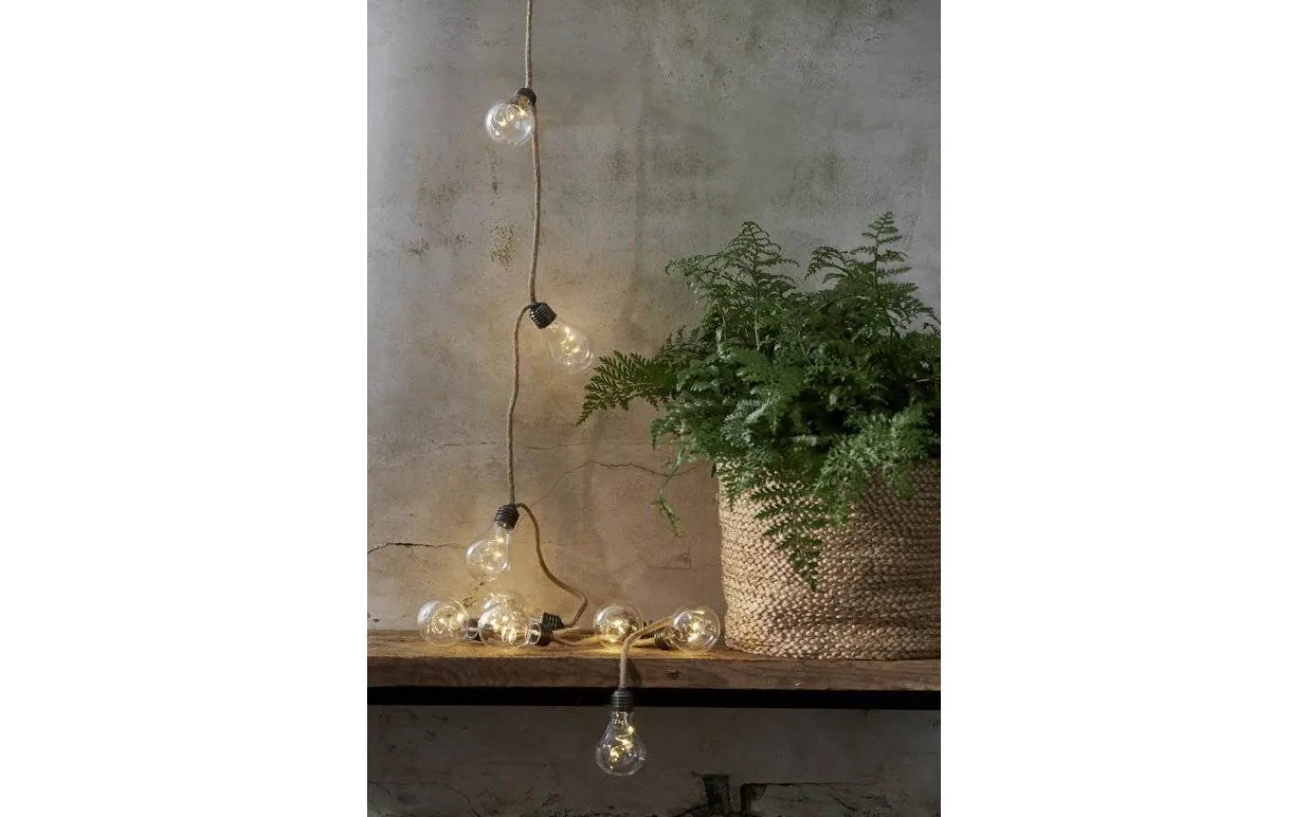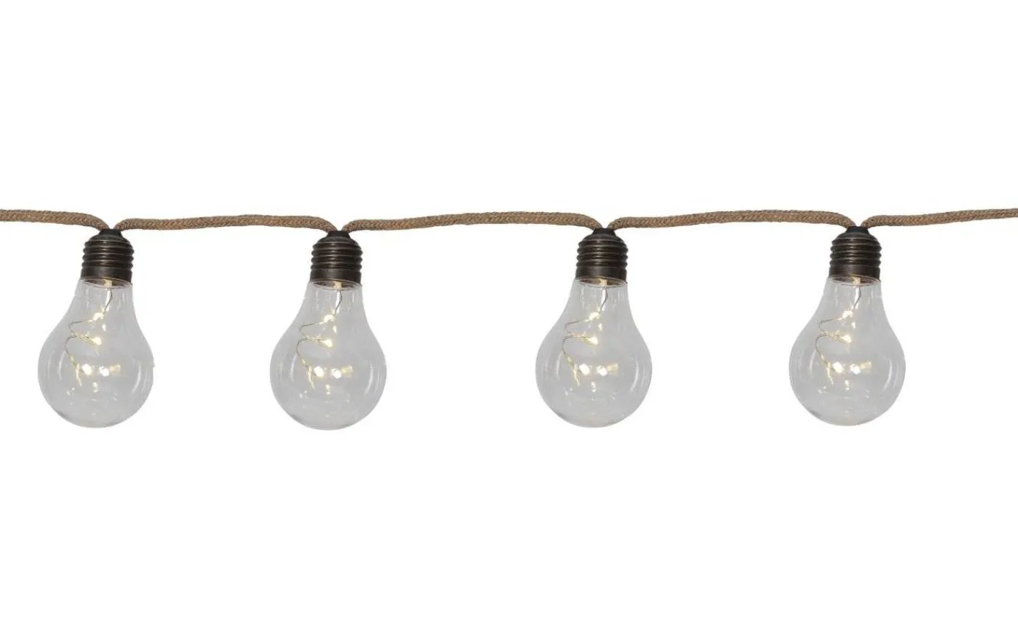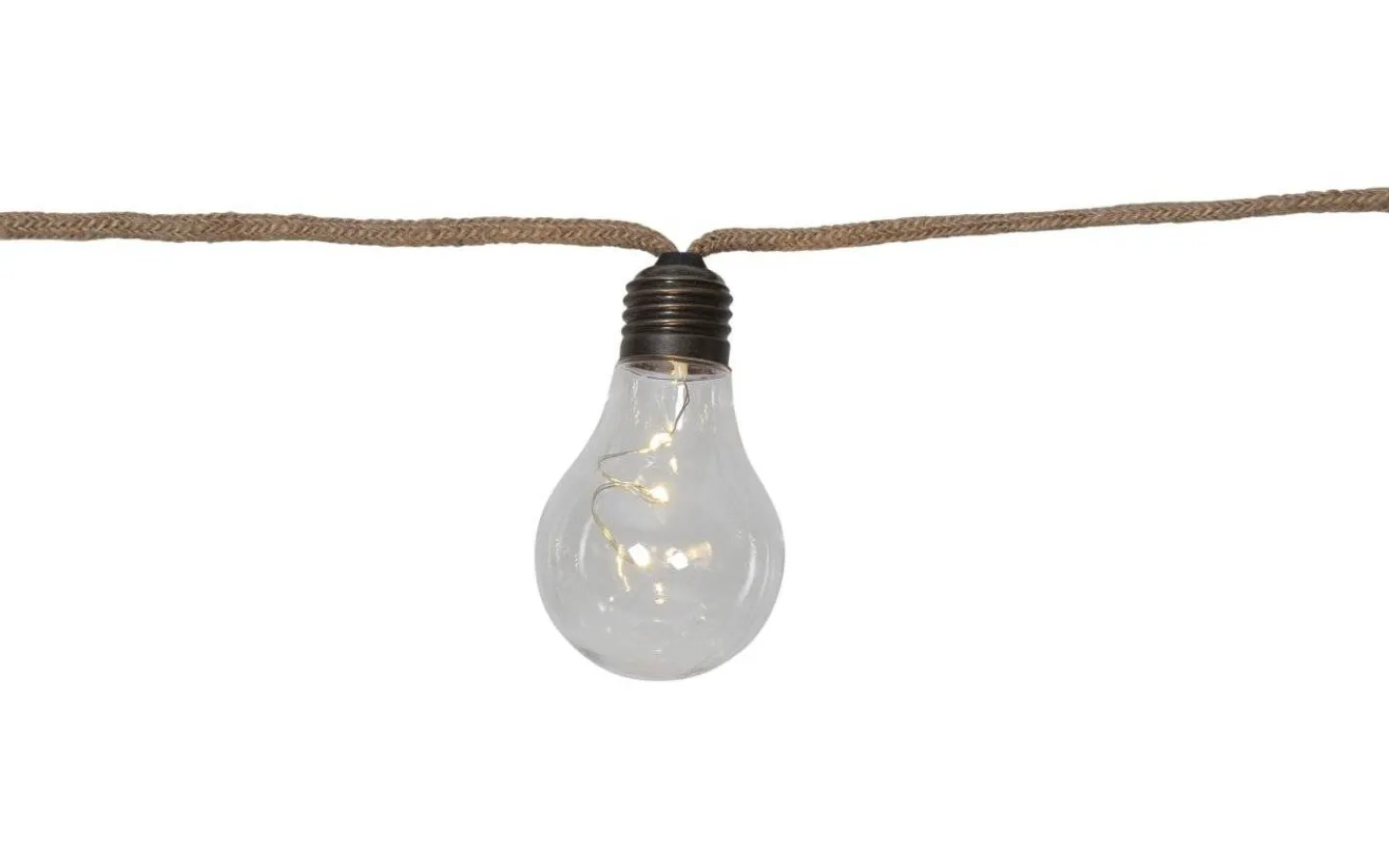Ljusslinga med 10 LED ljus för inomhusbruk. Klara lampor och kabel med juterep. Dekorativ inredning som ger ett mysigt sken i hemmet.