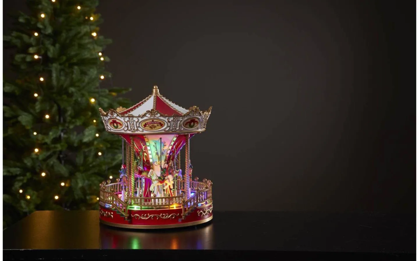 Fina Largeville från Star Trading är en batteridriven karusell med juligt tema. Välj mellan funktionerna ljus eller ljus/rörelse/musik. Passar perfekt att placera denna karusell i banrummet och skapa en mysig julkänsla.