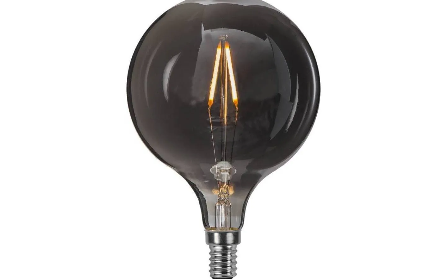 Dekorations-LED-lampa med rökfärgat glas som ger ett varmt och mjukt sken med en spegeleffekt i glaset. Färgtemperaturen är 2100k och ljusflödet är 45lm. Lampan är dimmerkompatibel och har en E14-sockel.