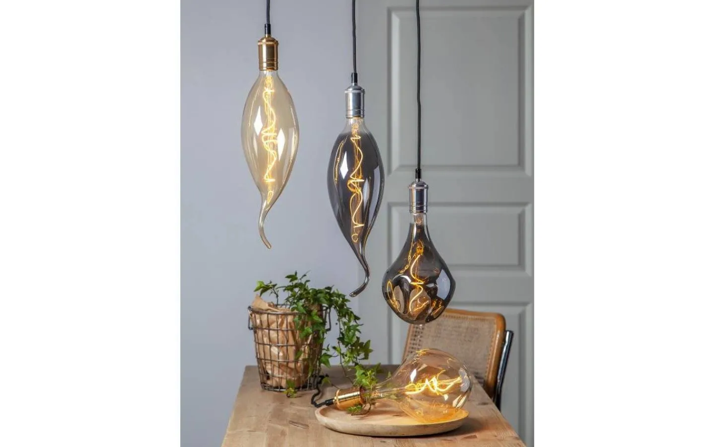 Väldigt läcker stor LED-lampa som är speciellt formad med en enkel spiral som ger ett vackert varmvitt ljus. Det är dimbara och passar utmärkt till många av våra upphäng.
