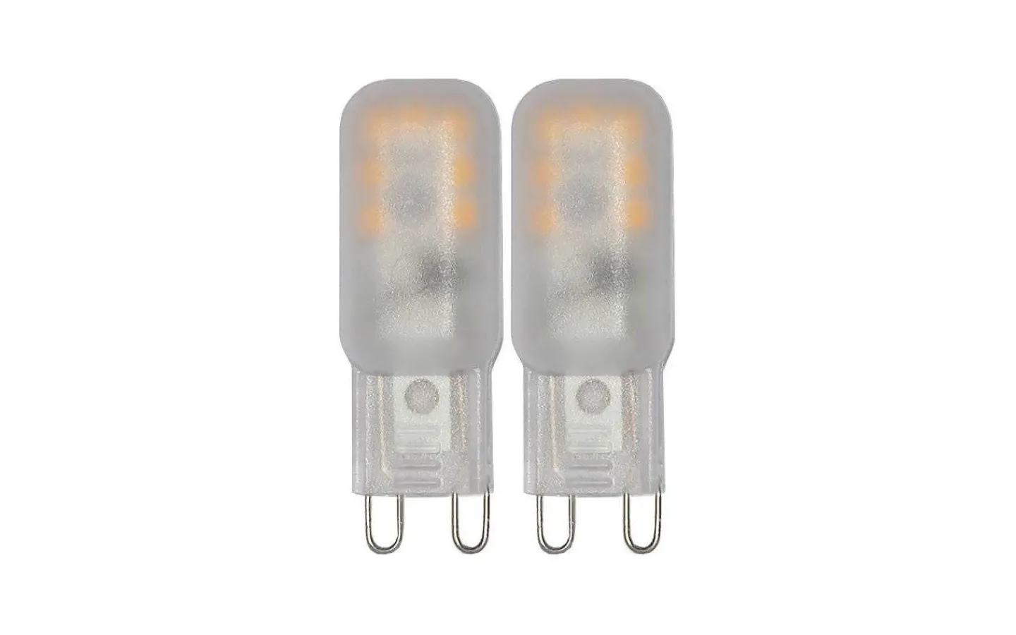 LED-ljuskälla med G9-sockel. Lampan ger ett varmvitt ljus på 2700K och höljet är av PC.