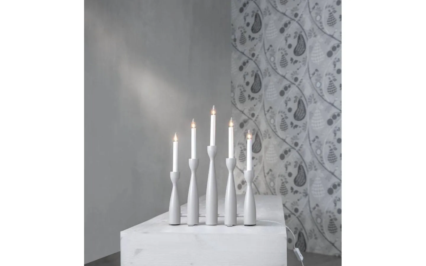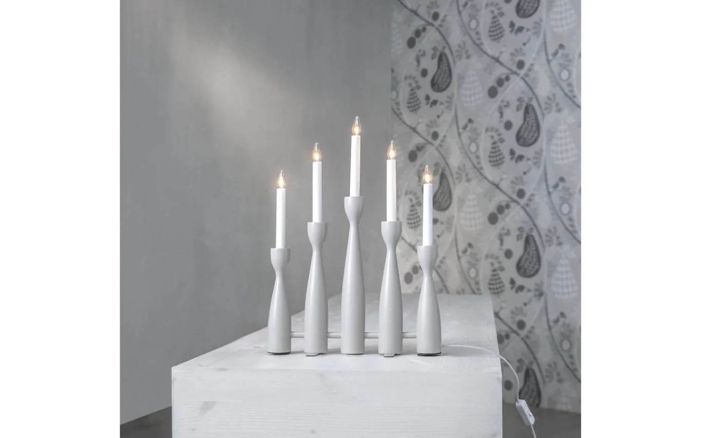 Midja adventsljusstake från Star Trading är en elegant och modern adventsljusstake tillverkad i trä med ett metallrör som går mellan de svarvade trä armarna.
