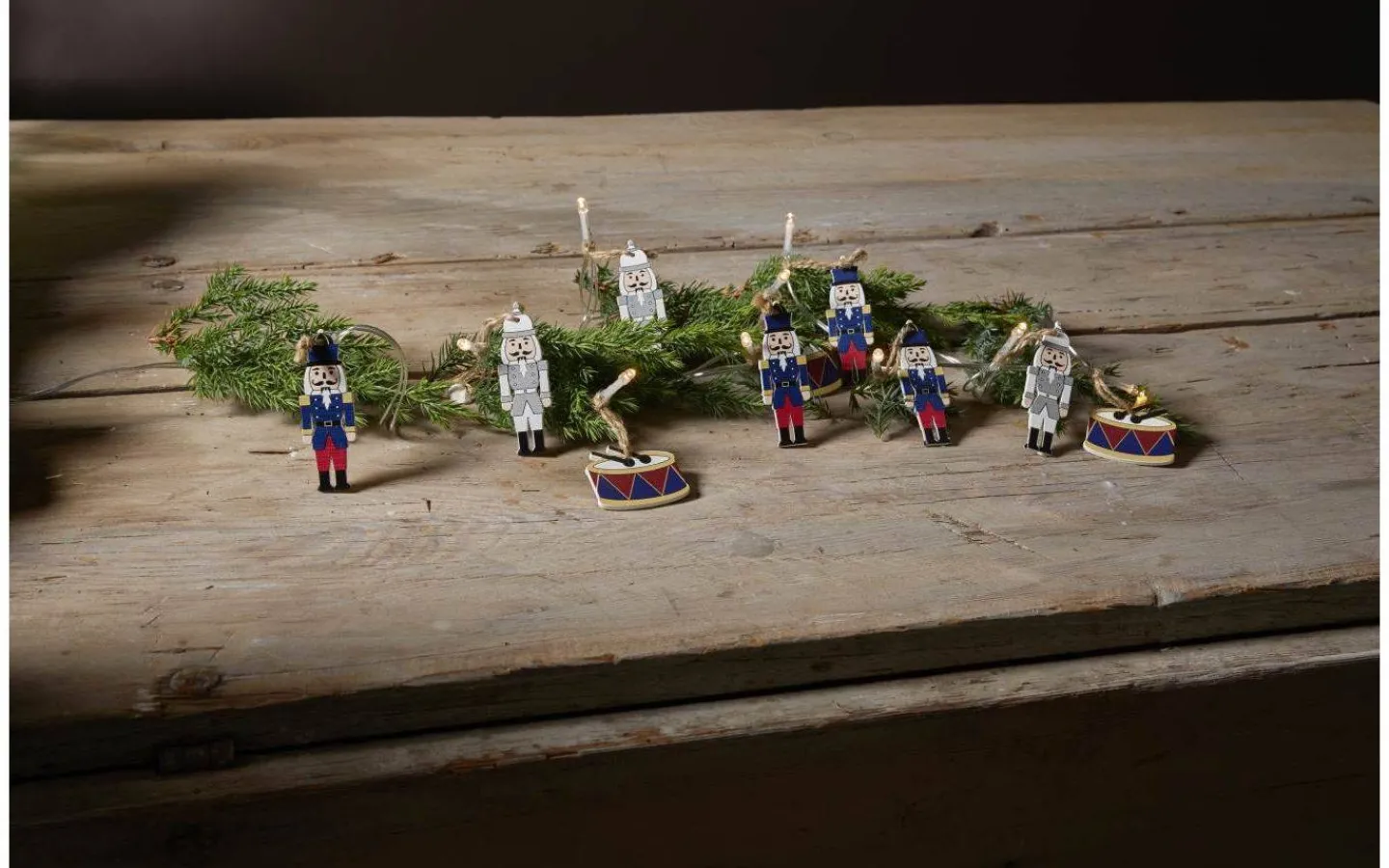 Nutcracker ljusslinga från Star Trading är för inomhusbruk dekorerad med 10 stycken härliga figurer i trä. Figurerna är fastknutna med hampasnöre. En dekorativ inredning som ger ett mysigt sken i hemmet. Piffa upp hemmet under juletid med denna superhärliga ljusslinga.