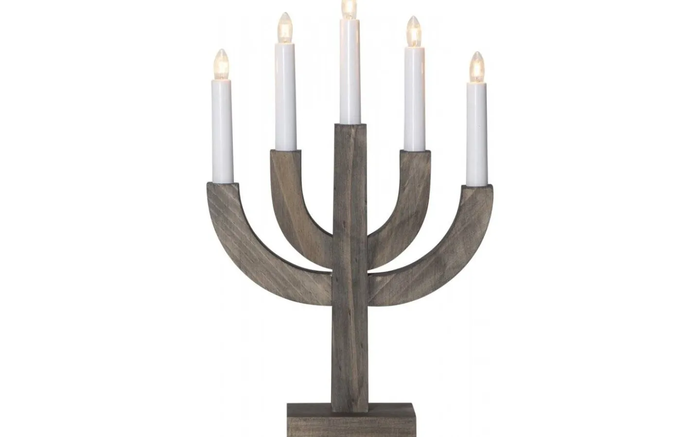 Brunbetsad träljusstake med 5 ljuskällor, lätt att placera då den är liten i storleken. Skapar en härlig julstämning både i fönster och inne i rummet på t.ex en hylla eller skänk.