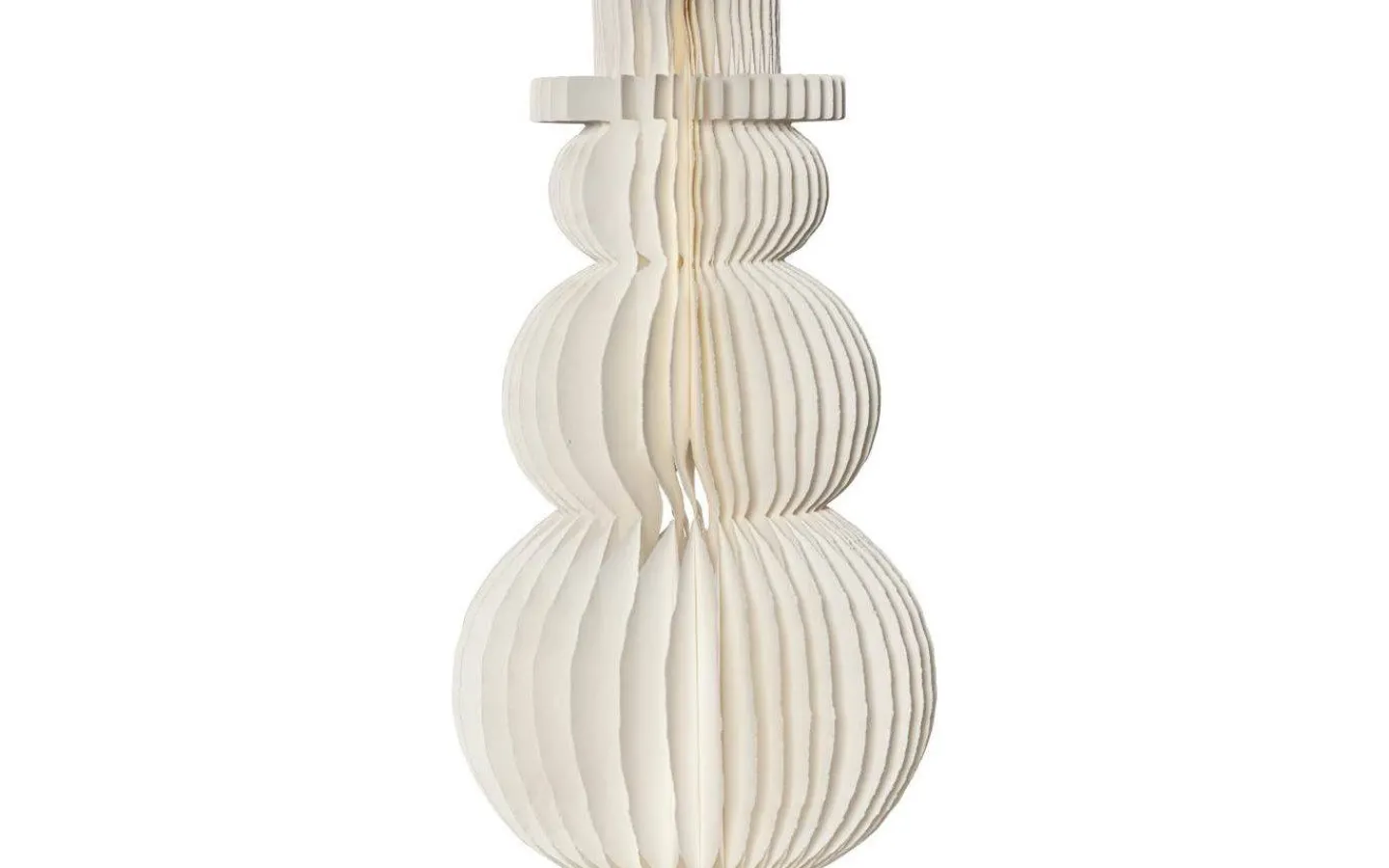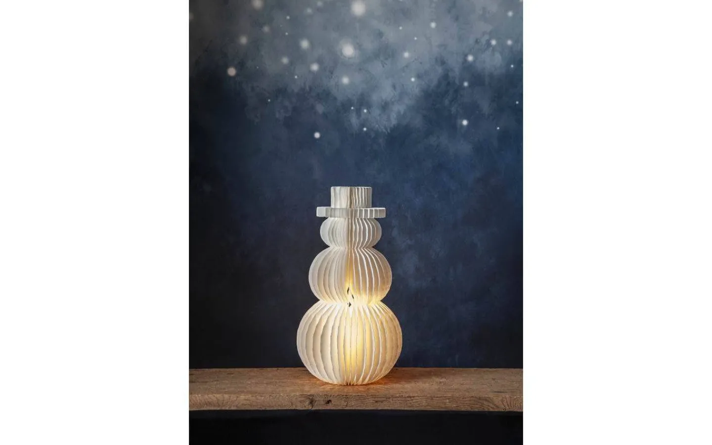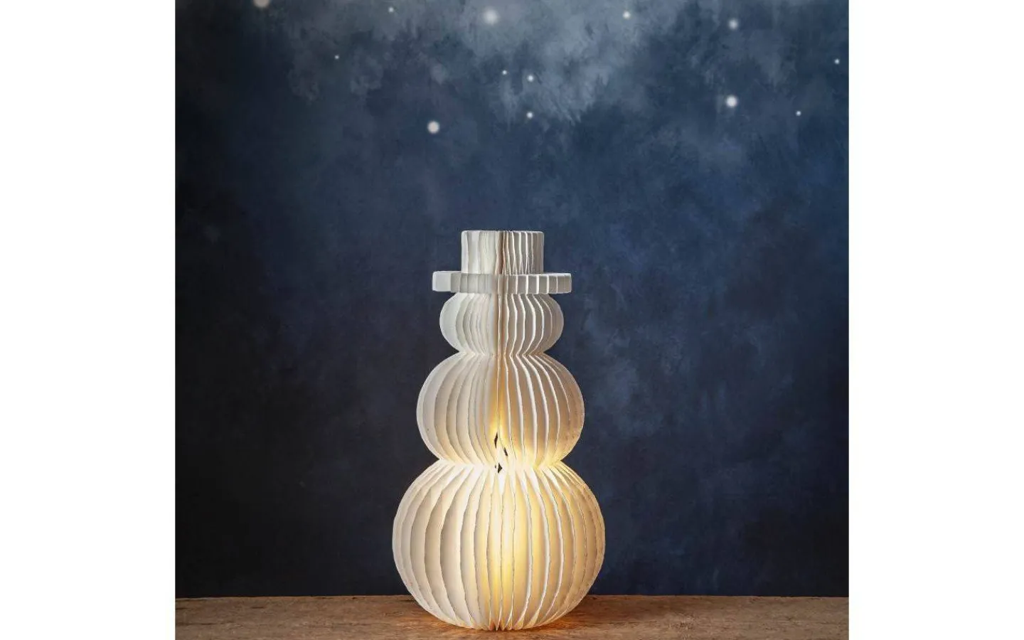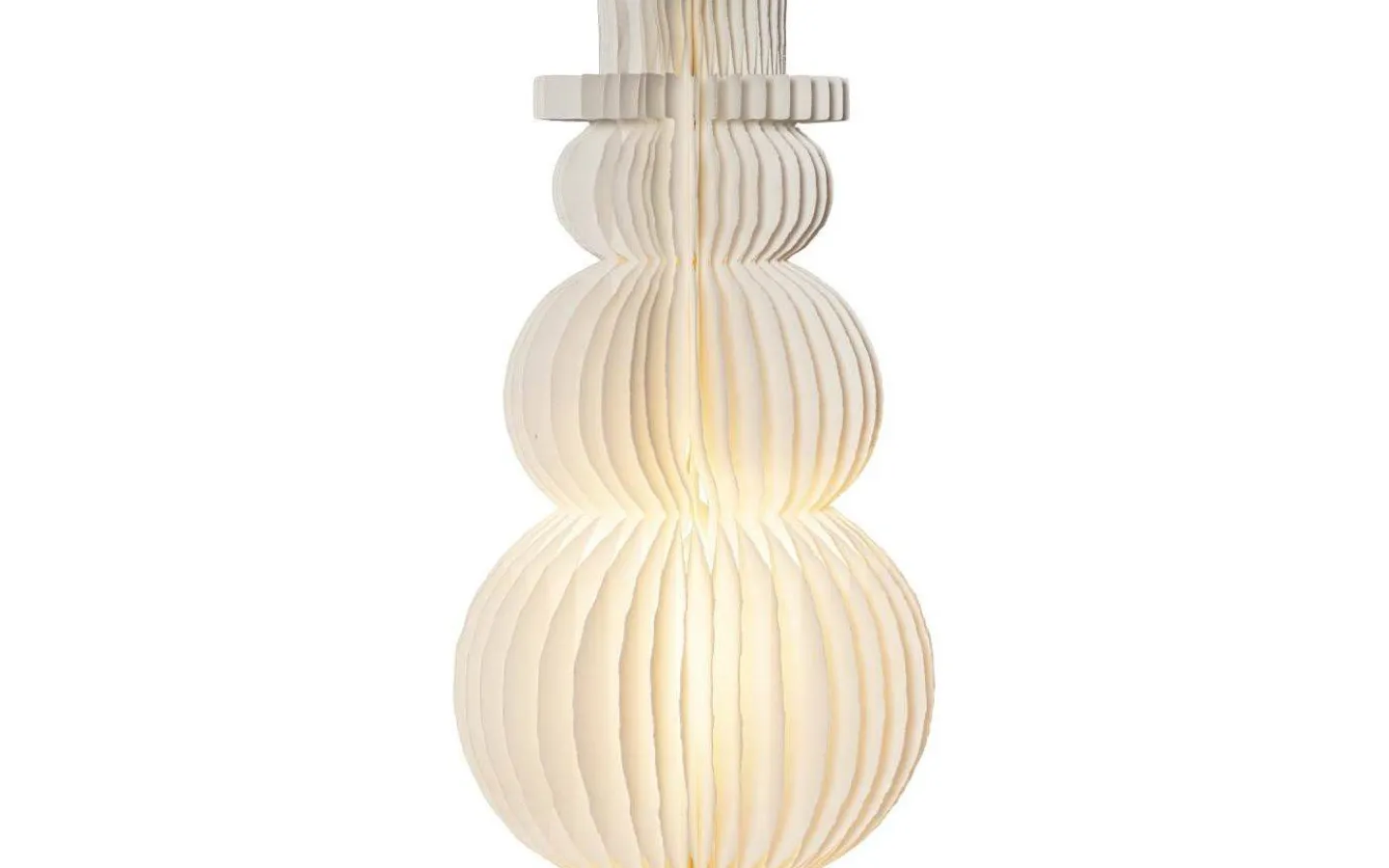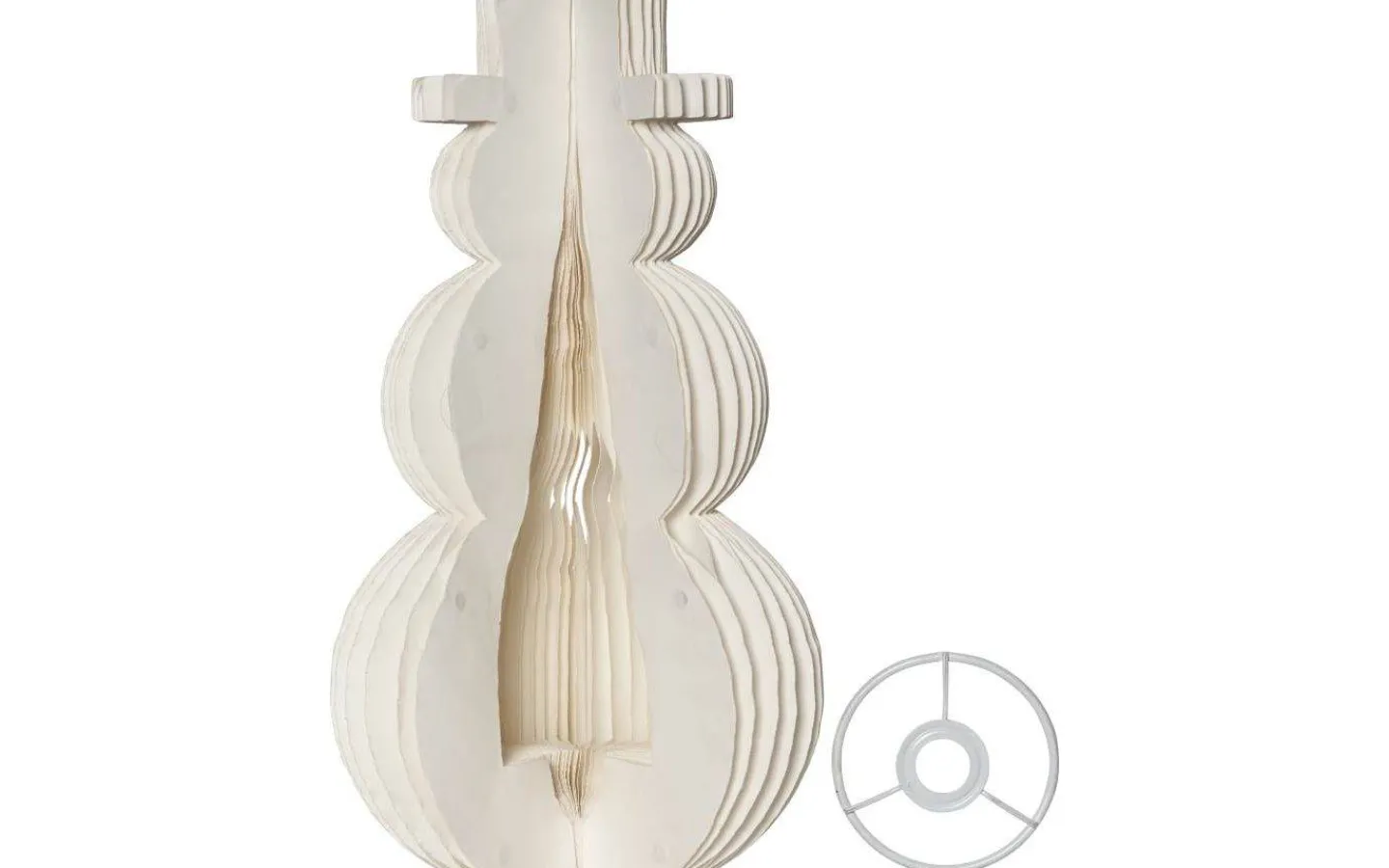 Dekoration i form av en snögubbe tillverkad i papper. Placera din ljuskälla inuti och lys upp den, lika snygg med ljuskälla som utan. Dekorera till advent och den ger en härlig julstämning. Sladd och ljuskälla säljs separat, mixa och matcha med våra inomhusupphäng och ljuskällor. Passar till E14 sockel.