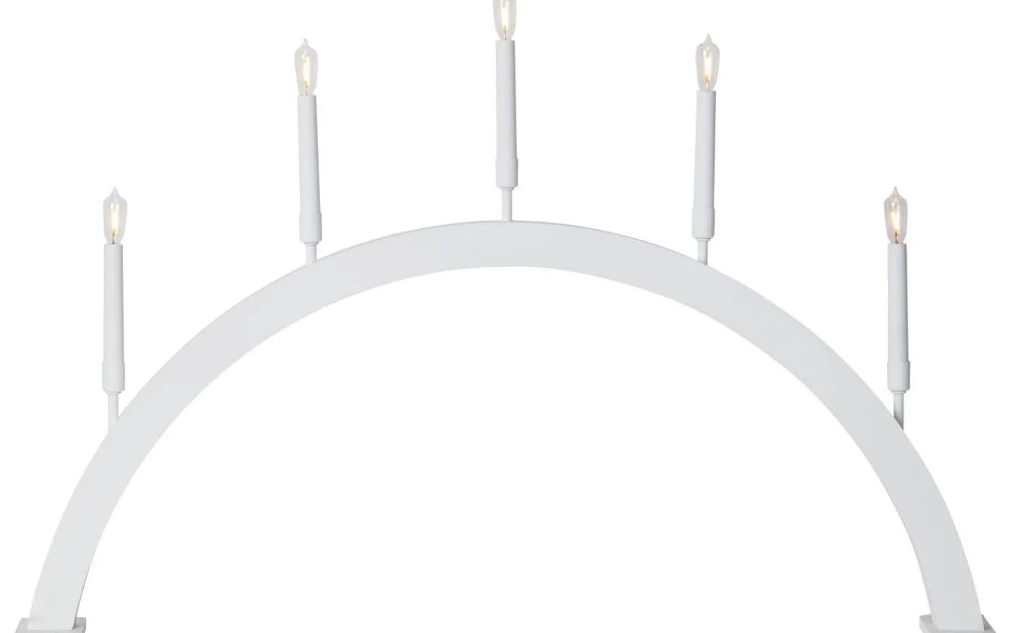 Storm, från Star Trading, är en större 5-armad bågformad vit ljusstake. Denna moderna och stilrena ljusstake passar perfekt till dig med en större fönsterkarm eller också till offentliga miljöer. Då varje ljus är fristående och inte följer med i bågens form får denna ljusstake en pampig stil. Storm levereras komplett med lampor som lyser i ett härligt varmvitt sken och med en grå/vit anslutningskabel på 1.5 meter med stickkontakt för vägguttag. Önskar du köpa reservlampor hittar du passande modell under ”Köp Till”.