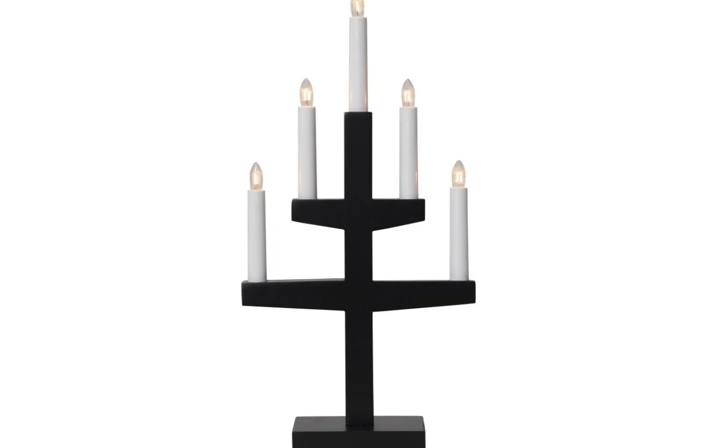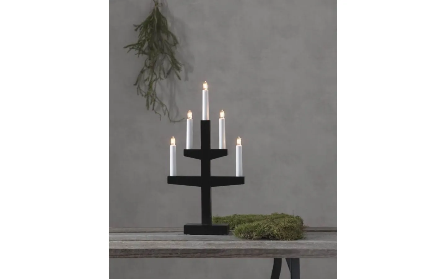 Svart träljusstake, 5 ljus. Placera ljusstaken exempelvis i fönstret för att skapa en härlig adventsstämning i hemmet. Denna produkt har FSC®-märkning.