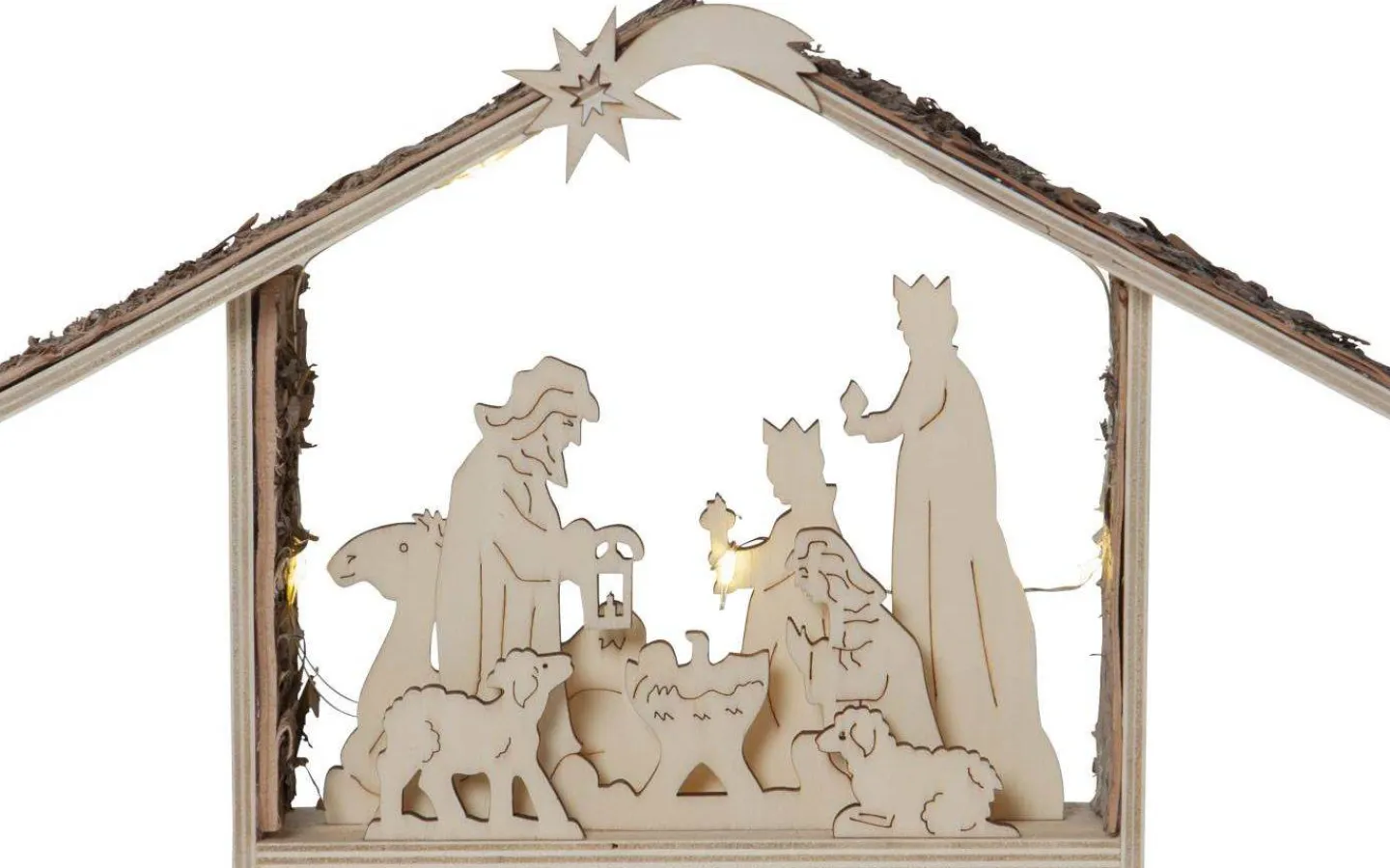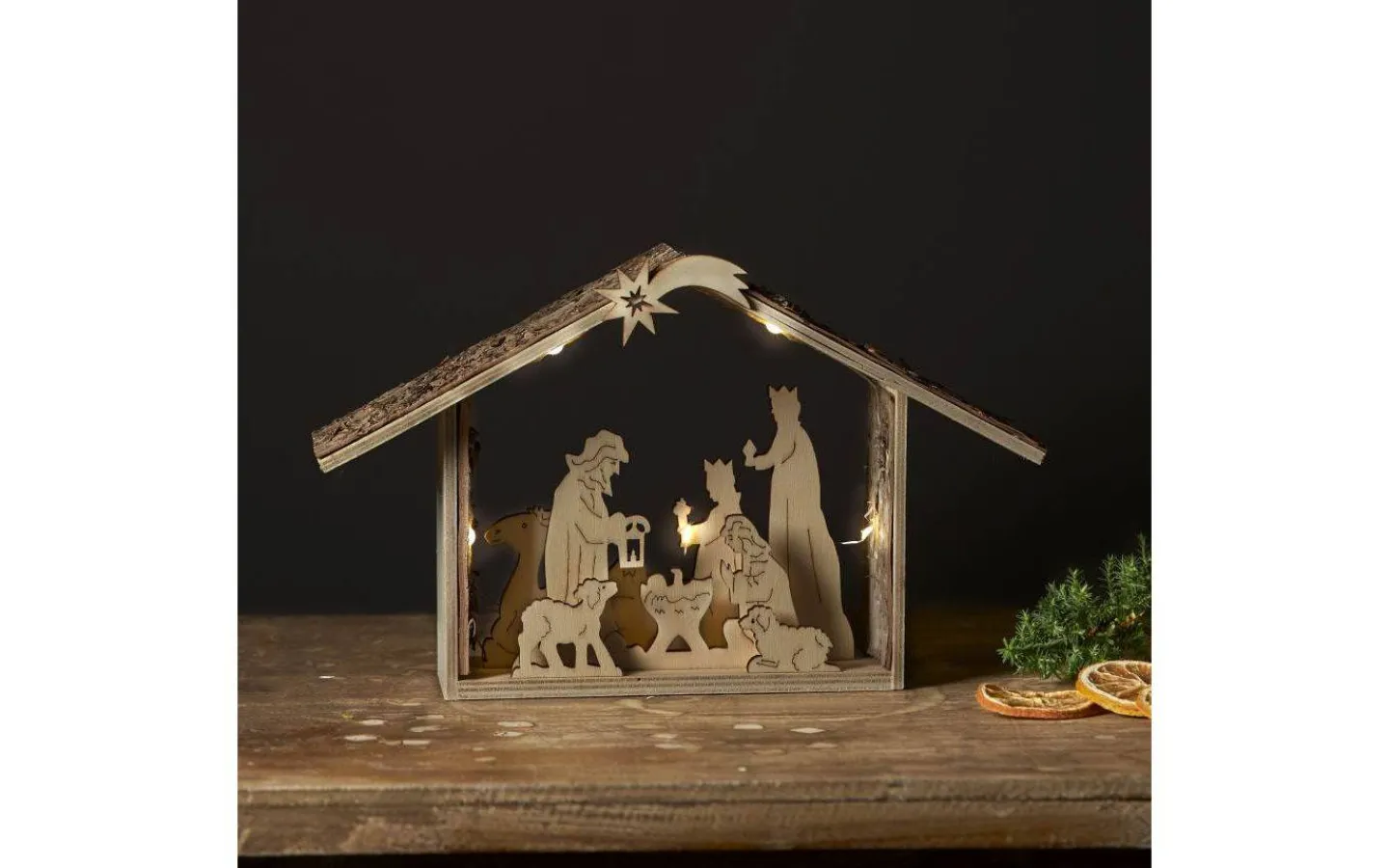 Laserskuren julkrubba i trä från välkända Star Trading är en detaljrik och stämningsfull krubba som lyser i härlig varmvit ljussken. Krubban är omålad vilket gör den naturligt vacker. Perfekt att dekorera med till advent och jul! Placera krubban en hylla eller på ett bord för att få den perfekta julkänslan.