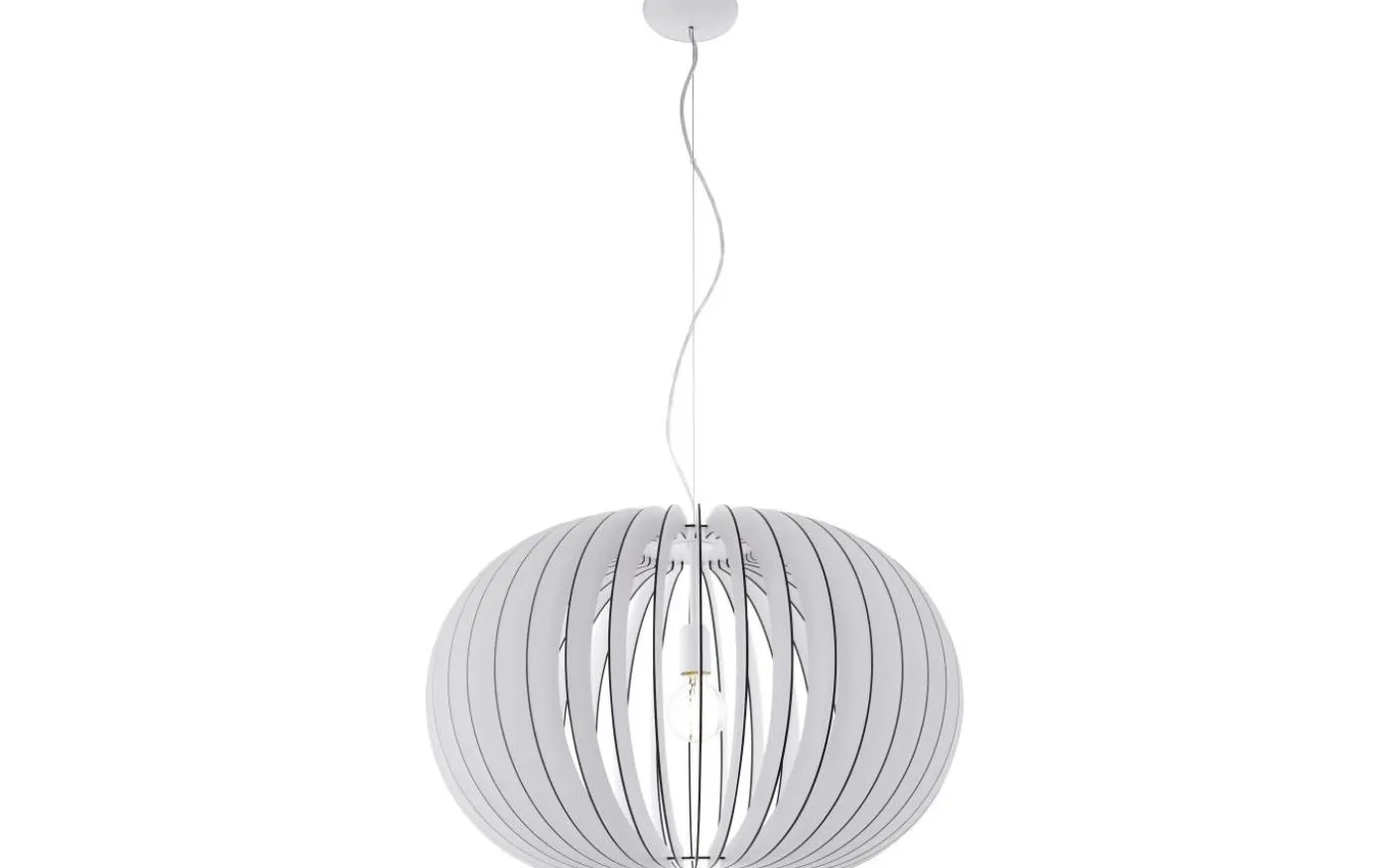 Stellato Taklampa, med en diameter på 70 cm, presenterar en unik design med överlappande träribbor i en vit nyans som skapar en vacker, sfärisk form. Denna lampa ger ett stämningsfullt ljus som sprids genom ribborna och ger ett lekfullt skuggspel på omgivande väggar och tak.