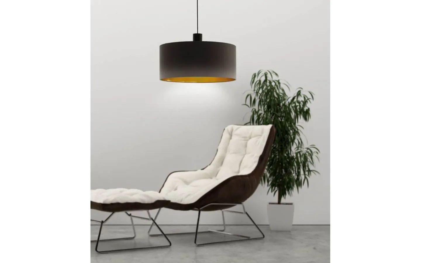 Pendellampan CONCESSA 1 har en rund tyglampskärm i cappuccino med en guldfärgad inre finish. Det mörkbruna metallelementet på skärmen och metallkapellet i samma färg kompletterar ljusets stilfulla utseende perfekt. Pendellampan är ett härligt tillskott till alla moderna interiörer och ger med sin diameter på 53 cm en välkomnande belysning i vardagsrummet, sovrummet eller matsalen.
