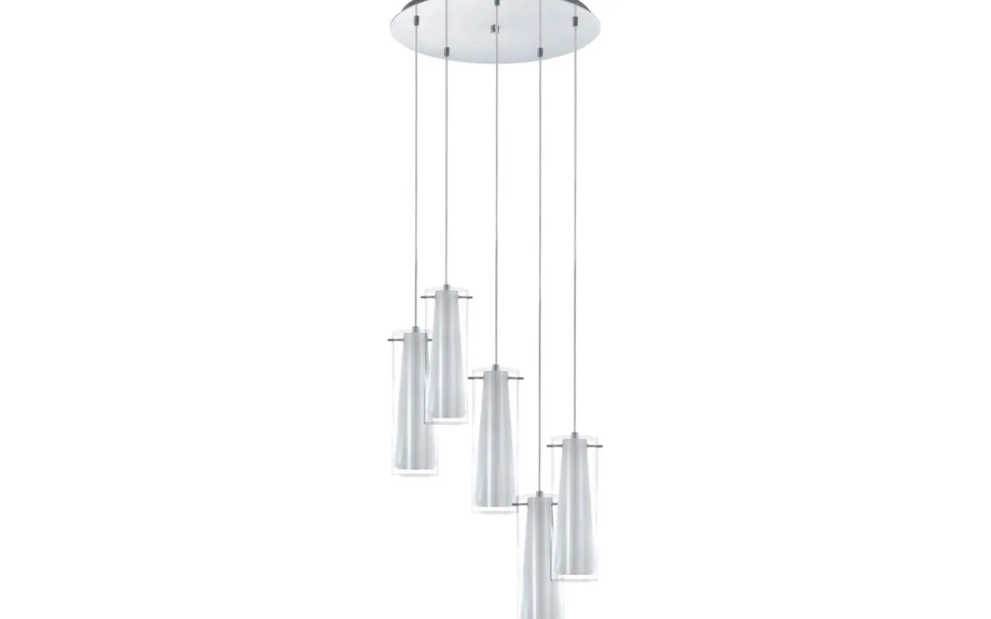 Denna nedpendlade armatur från serien PINTO är tillverkad av förkromat stål, klart och vitt, opalmatt glas.