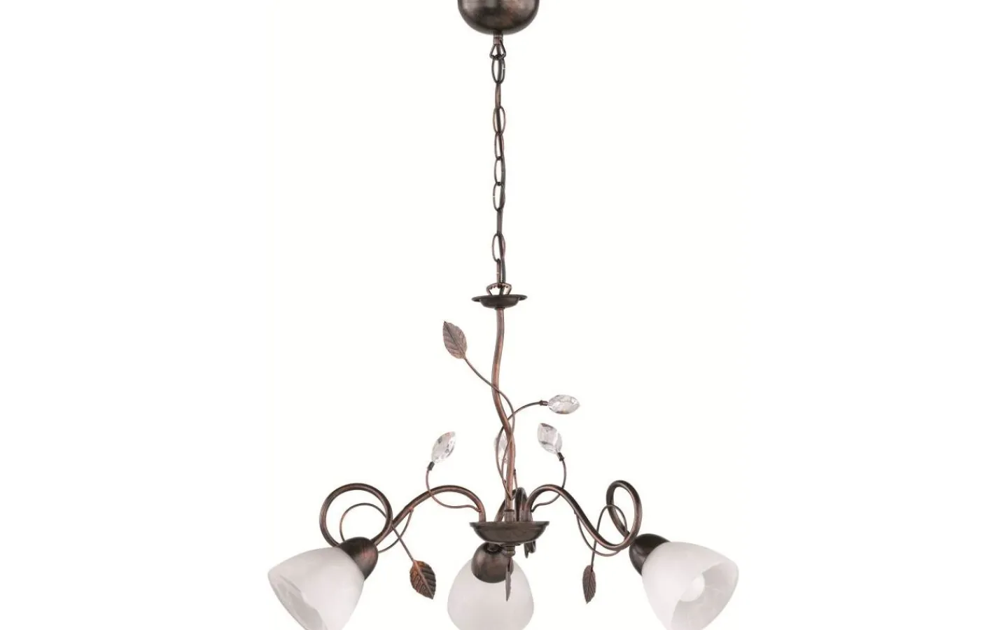 Ljuskronor frammanar en glamorös atmosfär i ditt vardagsrum och ger rummet mer elegans än någon annan lampa. TADITIO-ljuskronan kombinerar den klassiska elegansen hos en ljuskrona med traditionella former och färger. Den rostfärgade antika finishen i kombination med vitt alabasterfärgat glas och spridda kristallblad ger ditt vardagsrum den där speciella egenheten. Ljuskronan är som bäst placerad mitt i rummet eller ovanför ett matbord och har en diameter på 70 cm och en maximal upphängningslängd på 150 cm. De tre E14-sockelrna kan utrustas med vanliga halogen- eller LED-lampor som inte överstiger 40 watt. Eftersom ljuskällan inte är helt dold av en lampskärm rekommenderar vi att du använder en glödtrådsljuskälla. Detta ger den ett harmoniskt utseende och kompletterar helhetsbilden. Ljuskälla: exklusiv 3x E14 · max. 40W. Extra information: Takmontering, IP20, Lampa(or) ingår ej