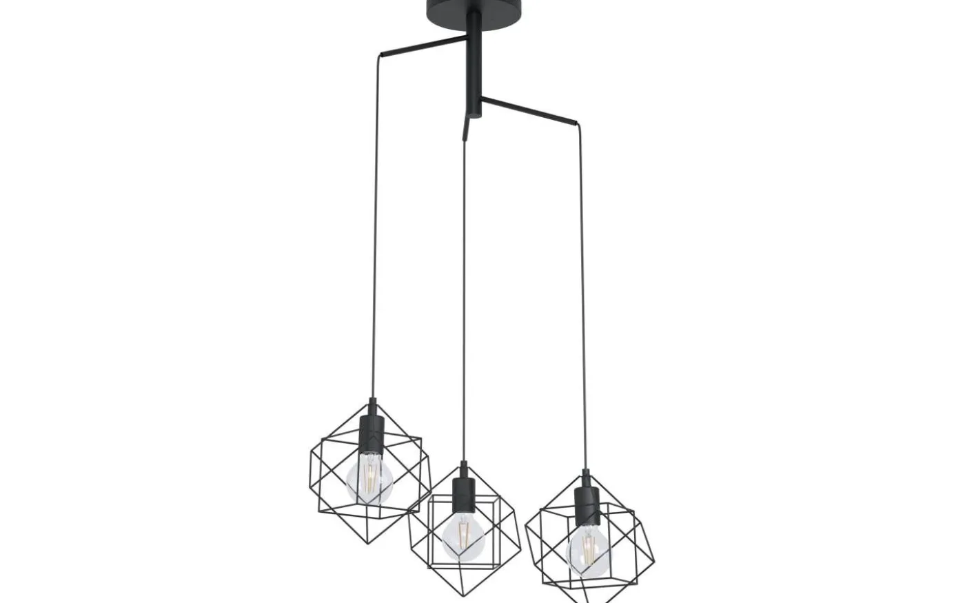 Straiton taklampa från Eglo är en stilfull taklampa med tre nedpendlade lampskärmar av stål. Observera att denna produkt skruvas upp och har en fast anslutning, den går ej att montera på en takkrok.