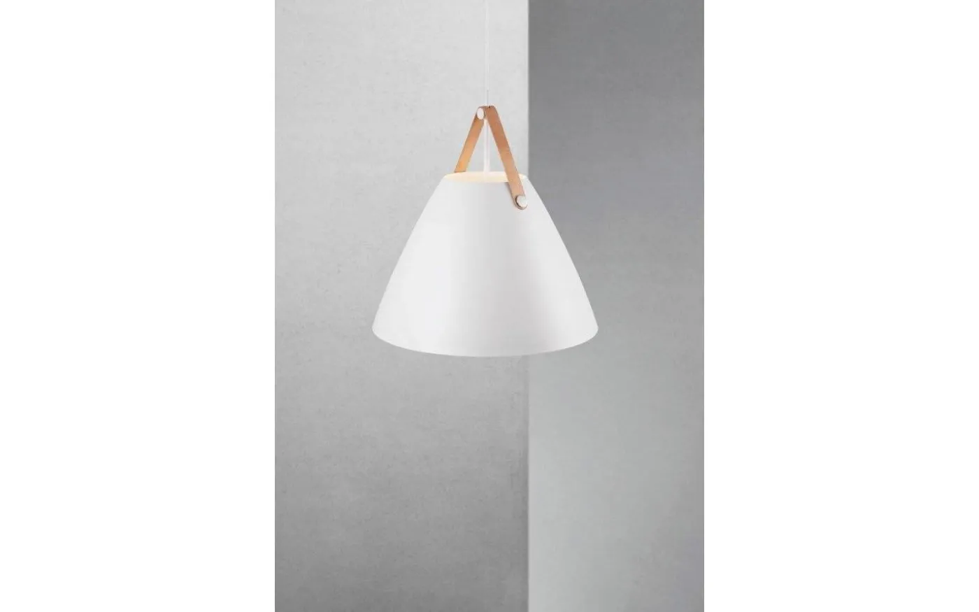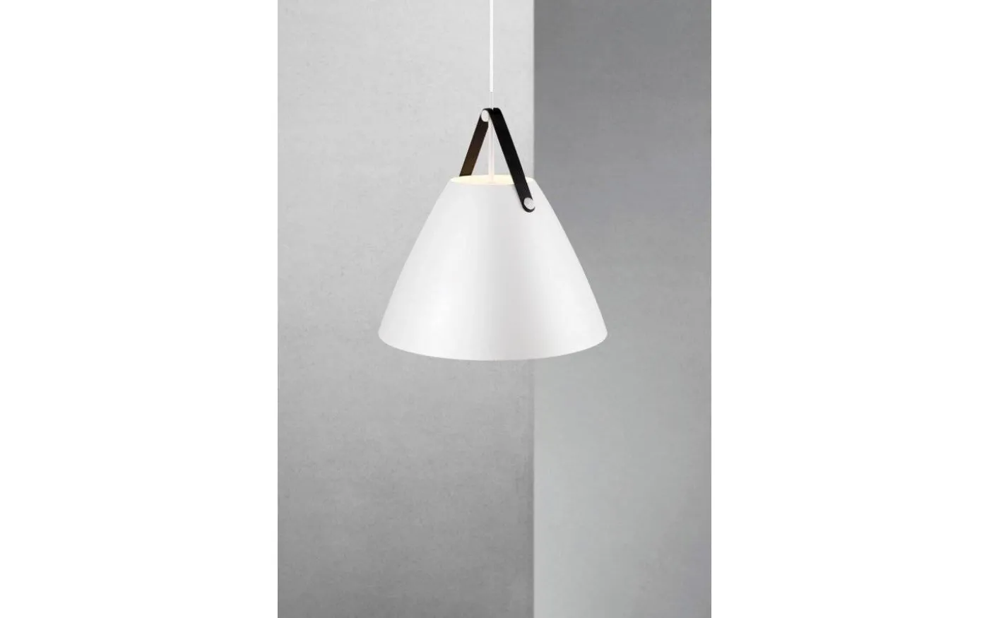 Taklampan Strap är formgiven av välkända danska designbyrån Bjørn + Balle för varumärket Design for the people som är en del av danska varumärket Nordlux. En modern och stilren taklampa som passar lika bra över matbordet som över köksön.