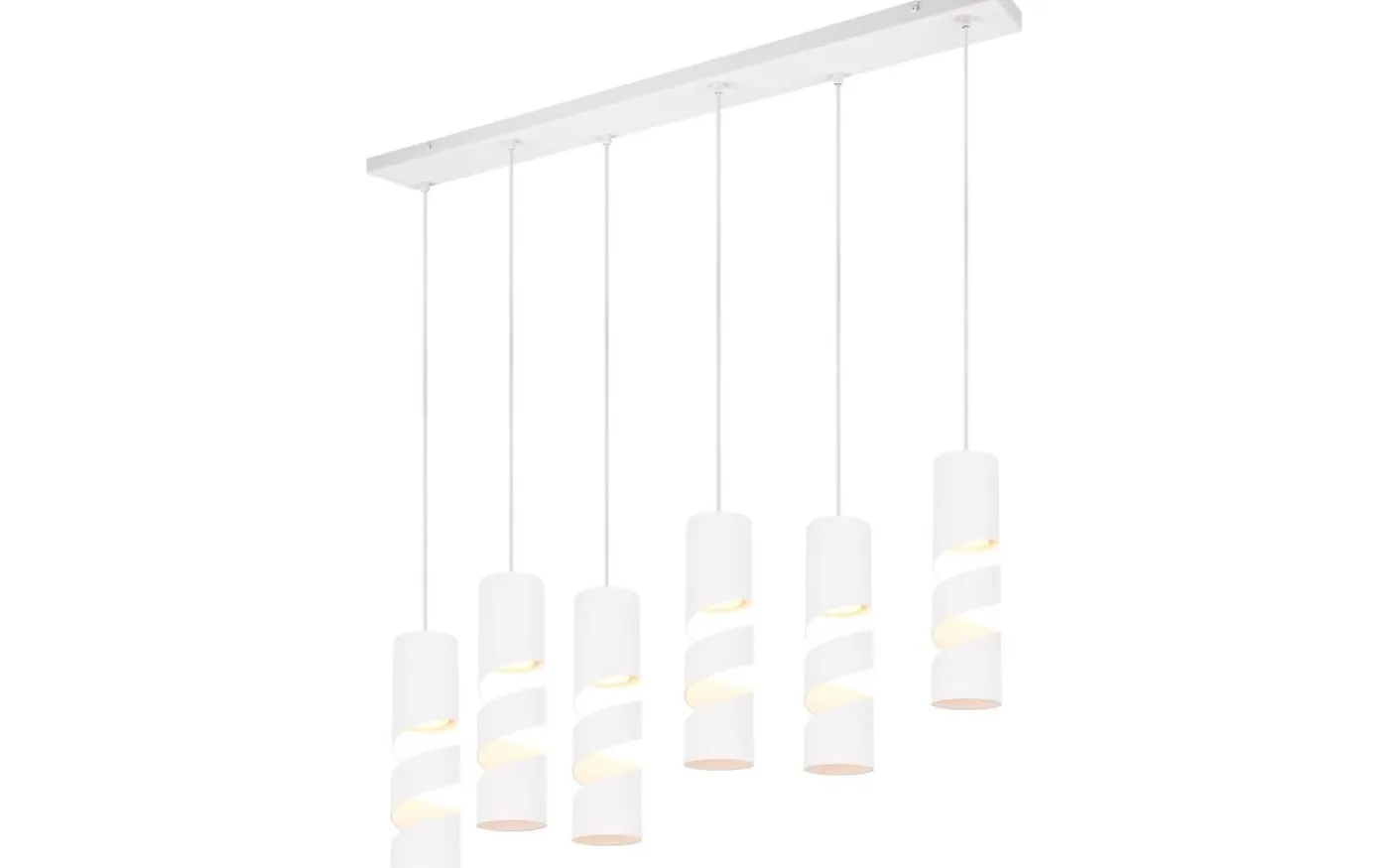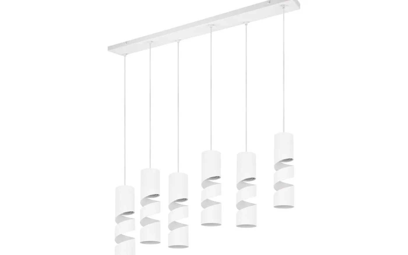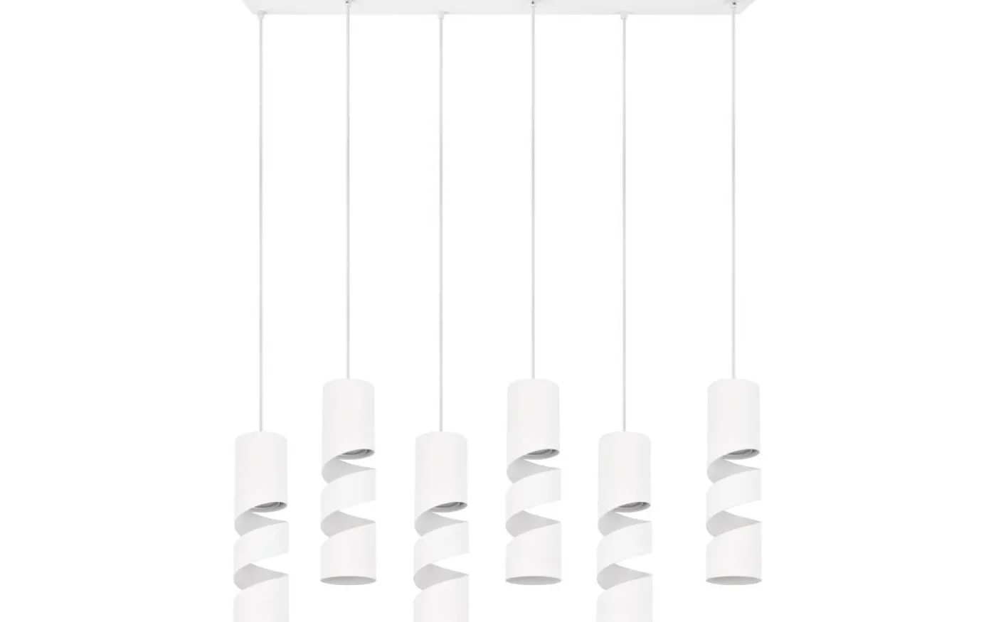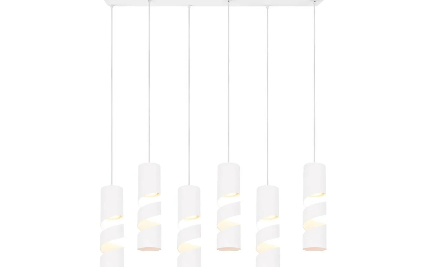 Upptäck pendellampan med sex ljuskällor från STREAM-serien – ett fascinerande mästerverk som påminner om korkskruvarnas eleganta form. Med sin moderna men tidlösa design ger pendellampan STREAM oöverträffad elegans till ditt hem. Skärmarnas smala, cylindriska form gör dem till det perfekta valet för belysning ovanför matbord eller köksbänkar. Med sitt mattvita utseende förhöjer den stilfullt alla interiörer och sätter smakfulla accenter. För modern och pålitlig belysning rekommenderas en LED-lampa. Den erbjuder hög ljuskvalitet, är mångsidig och övertygar med jämn belysning. Dess långa livslängd och låga värmeutveckling gör den till det perfekta valet för en mängd olika användningsområden. Ljuskälla: exklusiv 6x GU10 · max. 10W. Extra information: Justerbar i höjd, Takmontering, IP20, Lampa(or) ingår ej