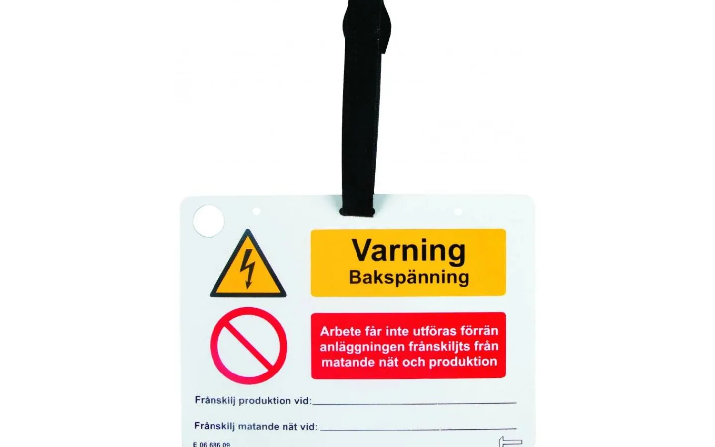 Strömförsörjn.,Nätstörskydd<Malmbergs Plastskylt bakspänning med kardborreband