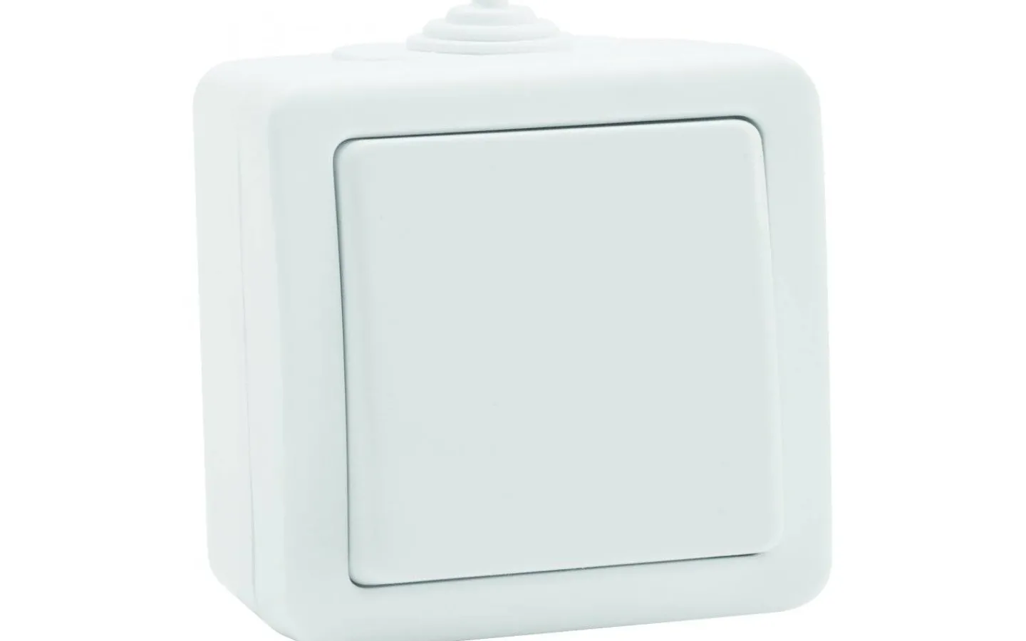 Kapslad strömbrytare med skruvanslutning. Genomgående införingshål med strypnippel.