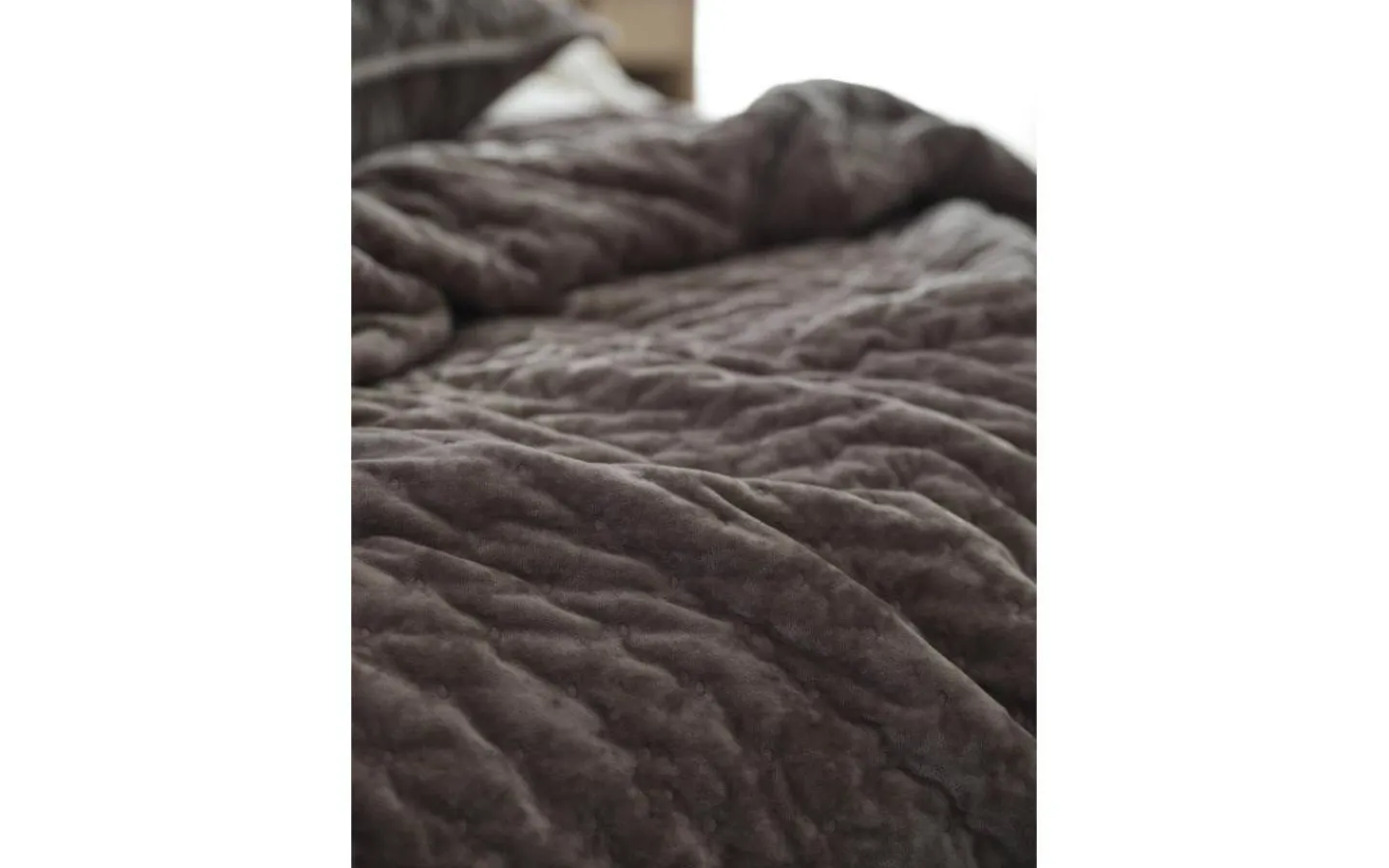 Vackra Cia från Svanefors är ett quiltat sammetsöverkast med broderade prickar.