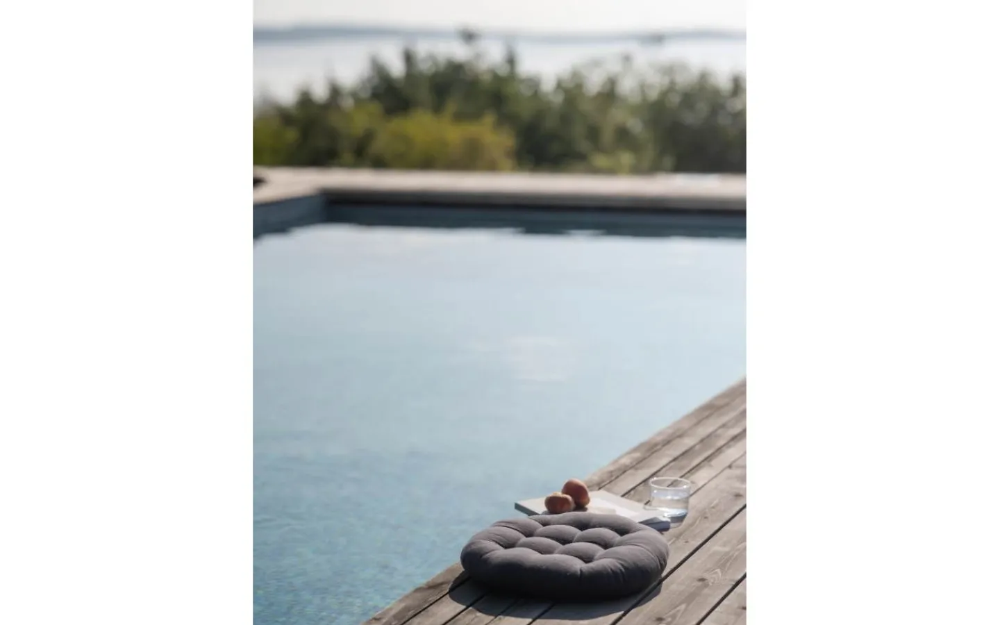 Rund stolsdyna i mjuk bomull med dekorativa stygn och fyllning av polyester. Finns även som sittdyna.