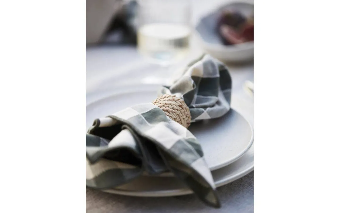 Servett med garnfärgat mönster och overlockade kanter. Att den är garnfärgad gör att servettens baksida är lika fin som dess framsida. Storlek 45x45cm.