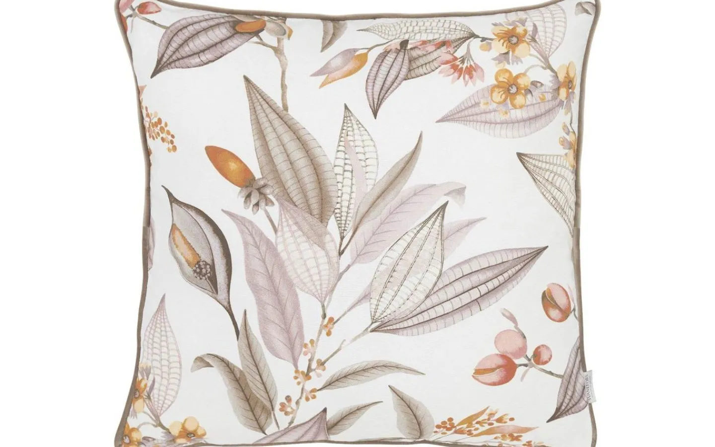 Kuddfodral med tryck mönster på bomullstyg och med matchande piping i sammet. Kuddfodralet har dragkedja i nederkant. Mått 45x45cm. Innerkudde köpes separat. För ett välfyllt utseende använd gärna en innerkudde som är något större, ca 50x50cm 30 grader skontvätt Klorblekmedel får ej användas Tål strykning med mellanhög temperatur Kan ej torktumlas Kan ej kemtvättas.