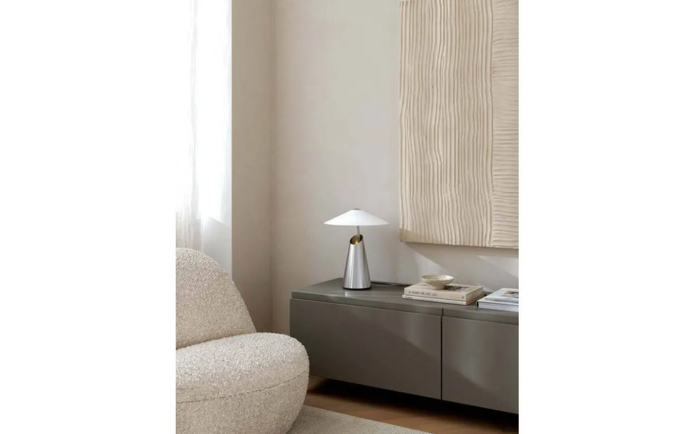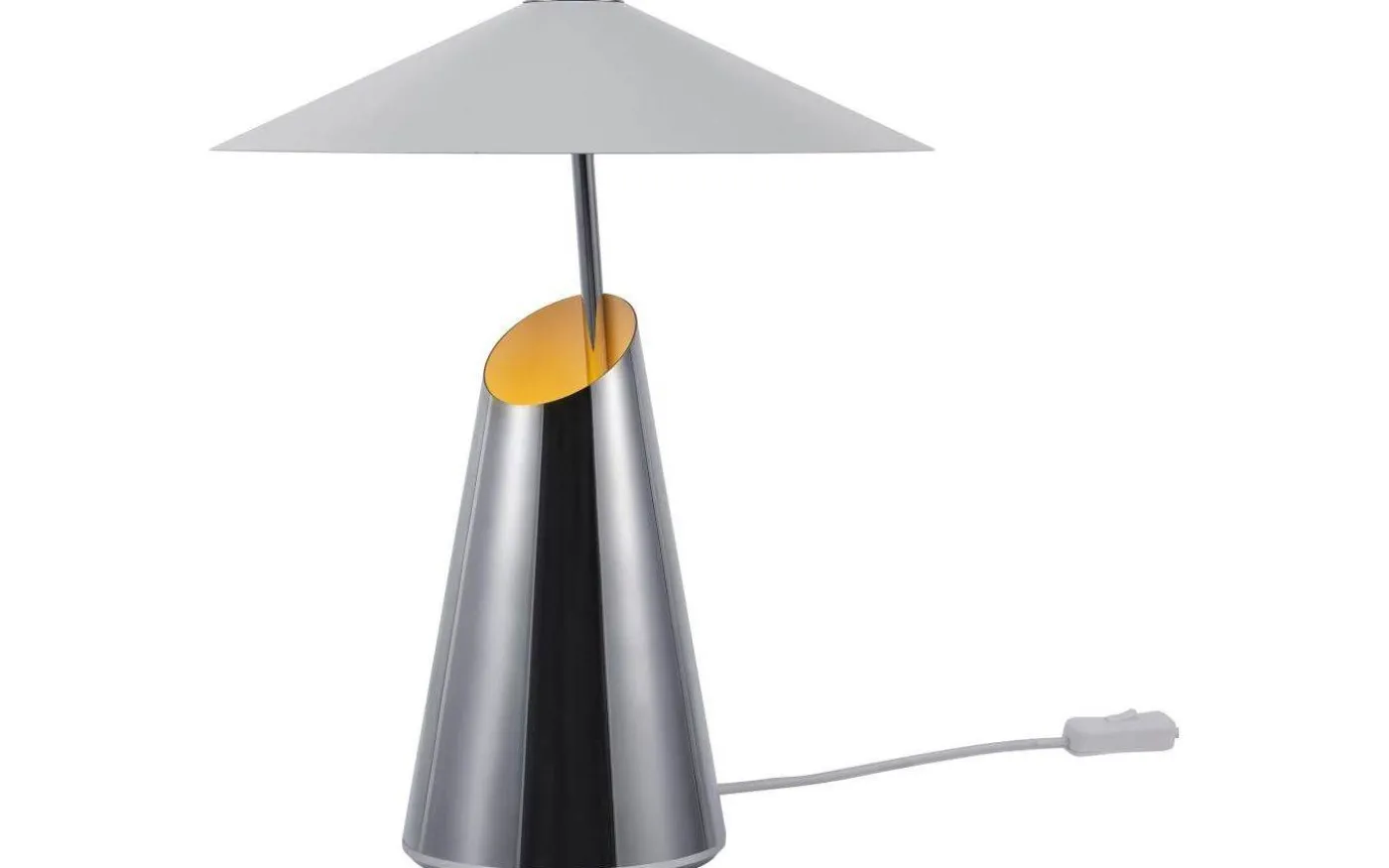 Taido från Design For The People är en bordslampa i kromad fot tillsammans med en trattformad skärm i vitlackerad metall. Ljuskällan placeras inne i foten och skapar ett mysigt och indirekt ljus. Skärmen är riktbar så att du kan styra hur du vill att ljuset ska falla.