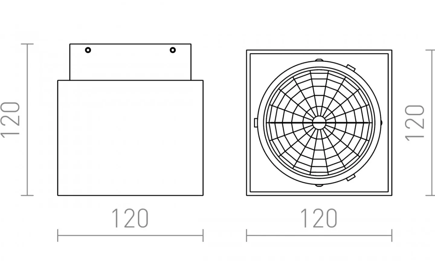 Fyrkantig taklampa med offset för en fast halogenljuskälla.