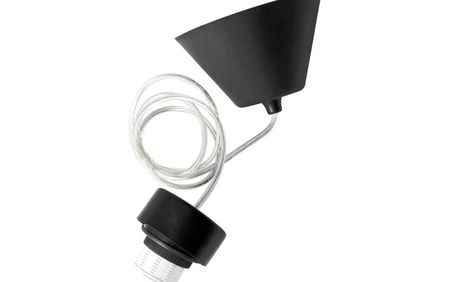 Takpphäng med E27-lamphållare med en 1,2m lång transsparent kabel och svartfärgad takkopp och sockel. Innerdiameter 7cm.