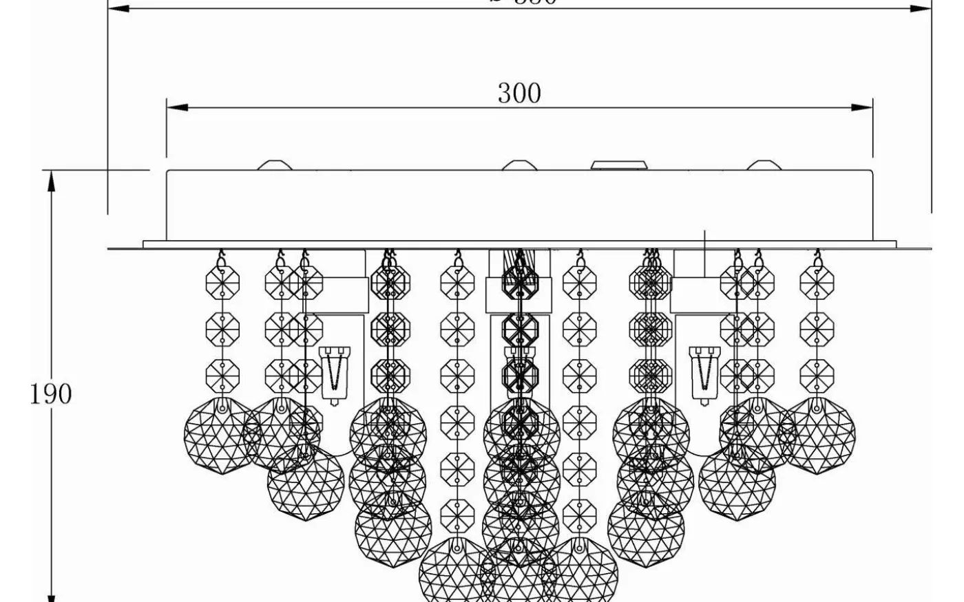 Teresa plafond för användning i badrum. Krom med tydliga prismor. Lampans huvudmaterial är metall och prismorna är gjorda av akryl. Monteras i taket med skruvar och fast strömanslutning. IP44.