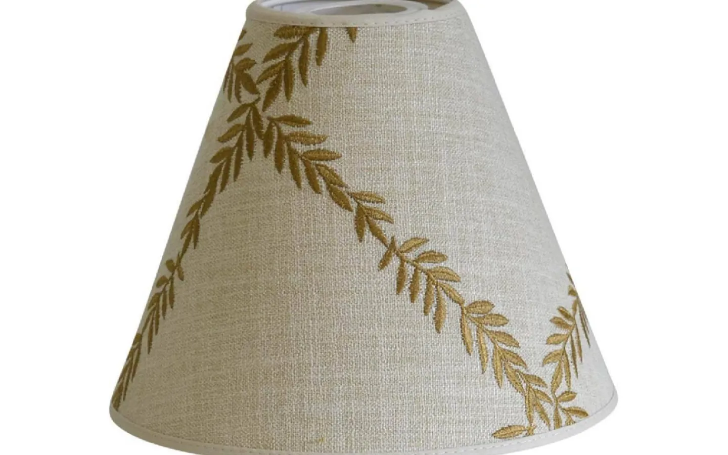 Pennorth lampskärm från välkända Hallbergs Lighting of Sweden är en stilfull toppringskärm i vackert mönster med kantband i ovan- och nederkant.