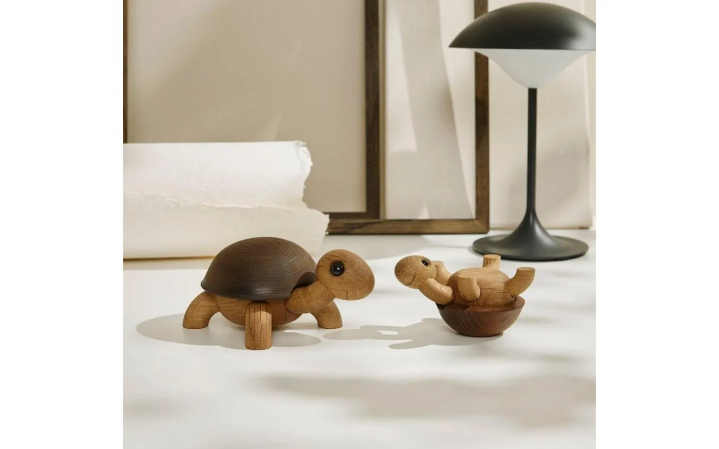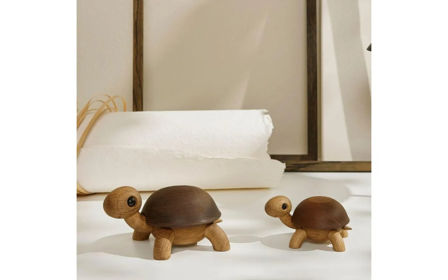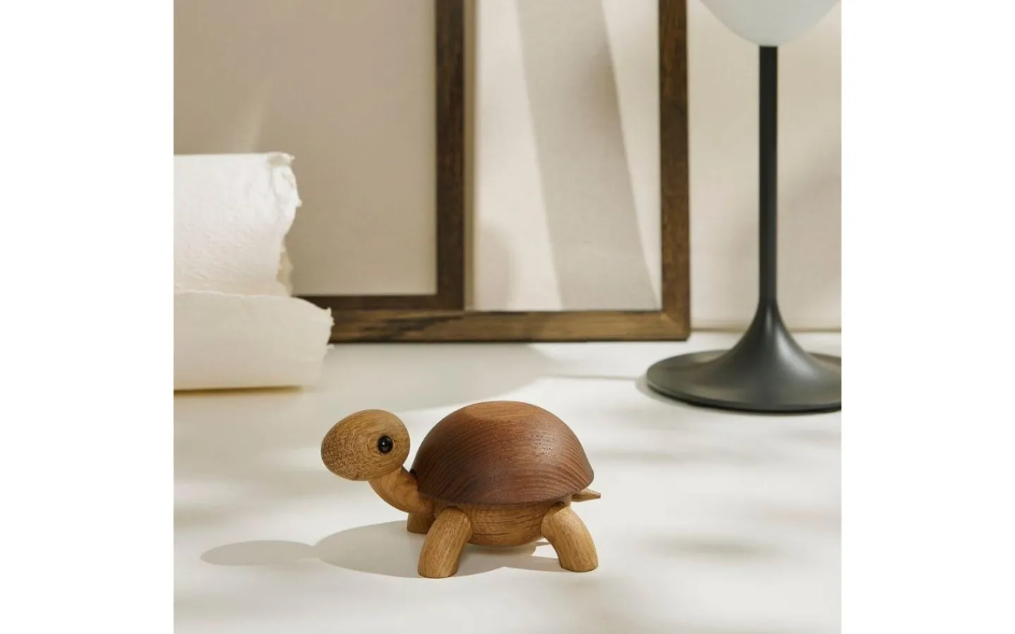 Trädekoration Sköldpadda. Färg: Natur. Måttl: Bredd 7 cm, Längd 11 cm, Höjd 5 cm. Material: FSC Ek, FSC Karboniserad Ask, Plast. Speedy är en lekfull och förtjusande sköldpaddsunge. Figuren är designad av Chresten Sommer och är ett lysande exempel på hans förmåga att skapa verklighetstrogna porträtt av djur. Sköldpaddsungen Speedy är inte bara en söt dekoration, utan gömmer också en skål under sitt skal. Den dekorativa träfiguren kan användas till barnets första tand eller att förvara dina smycken eller andra småsaker i. Mått: Bredd: 7 cm, Längd: 11 cm, Höjd: 5 cm. Material: FSC-märkt ek, FSC-märkt karboniserad ask, plast. Underhåll: Speedy är ingen leksak och får inte användas av barn. Figuren är en unik handgjord och handmonterad träprodukt, och det kan därför förekomma variationer från produkt till produkt. Rengör med en fuktig trasa. Använd bivax regelbundet på alla våra träprodukter för att de ska hålla längre.