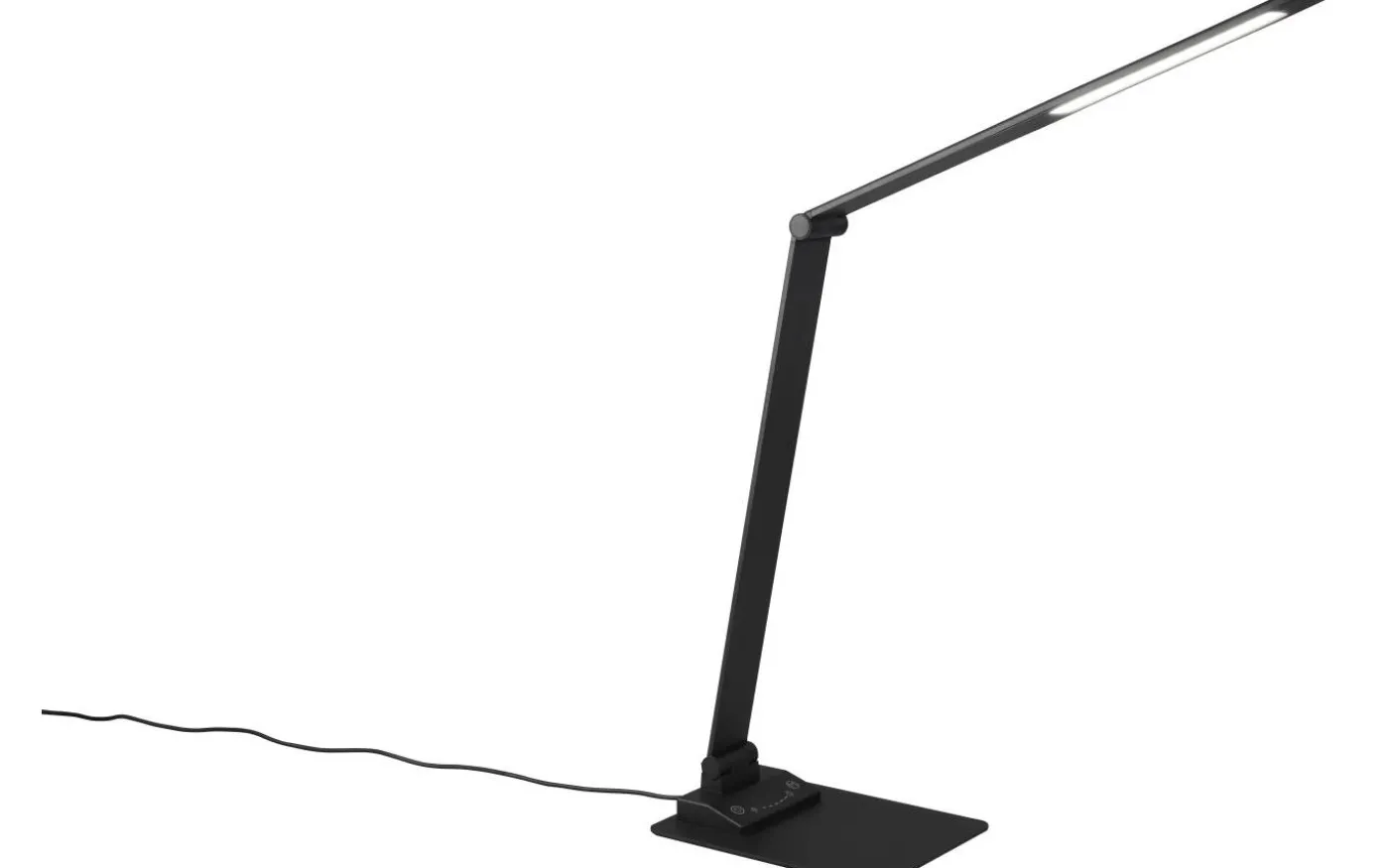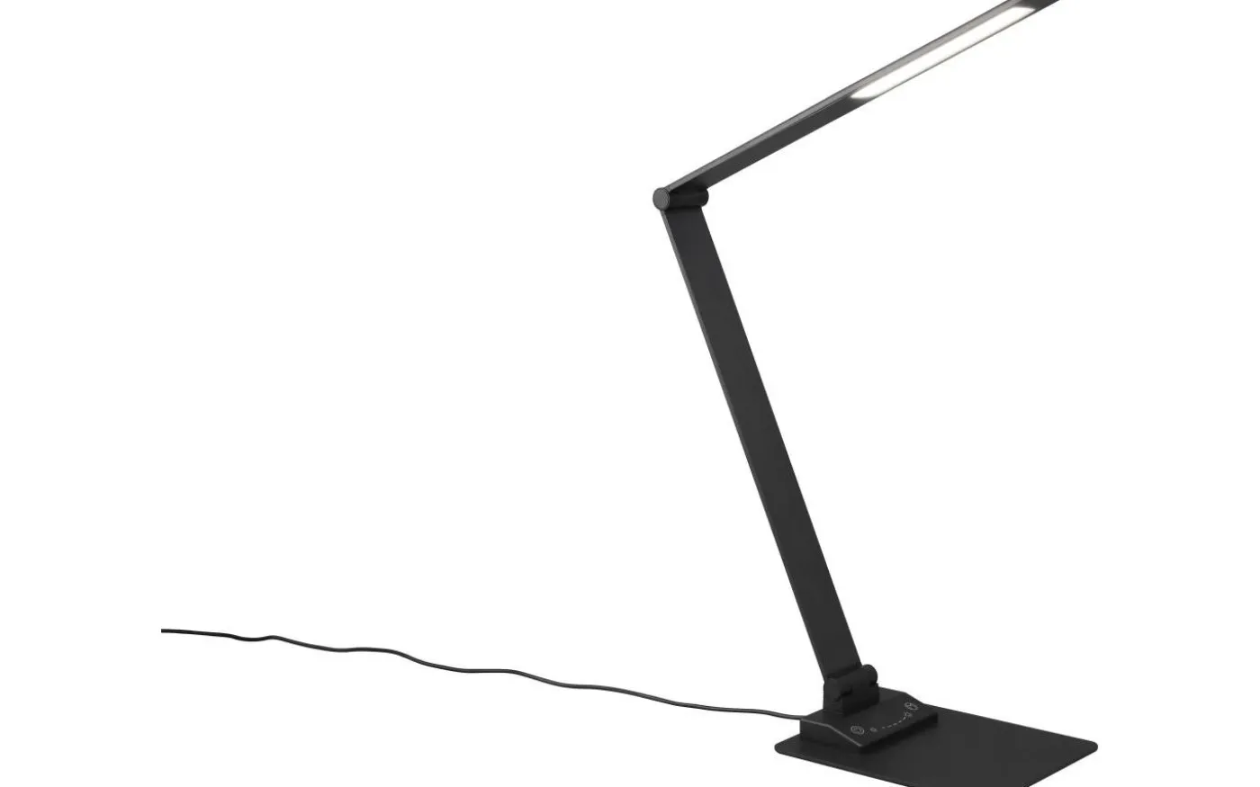 Effektivt arbete beror i hög grad på en idealisk ljusmiljö. Med sin integrerade SWITCH-dimmer erbjuder TRAVIS bordslampa en lösning som är skonsam för ögonen, eftersom ljusstyrkan kan justeras i tre nivåer (100 %, 50 % och 25 %) efter behov. Touchfunktionen på armaturen gör det inte bara möjligt att snabbt tända och släcka ljuset, utan gör det också möjligt att justera ljusfärgen steglöst. De praktiska lederna på armaturen gör att ljuset kan riktas individuellt, vilket gör armaturen till det perfekta valet för alla arbetsområden. Möjligheten att ladda smartphones eller andra enheter via USB- eller USB-C-anslutningen på lampan avrundar det på ett smart sätt. Den enkla designen i mattsvart smälter sömlöst in i alla arbetsytor. Dessutom har armaturerna modern LED-teknik, vilket står för hög ljuskvalitet. LED-ljuskällor kännetecknas av lång livslängd och låg värmeutveckling. Ljuskälla: inklusive 1x SMD, 6,5W · 1x 650lm, 3000+5000+6500K. Extra information: Justerbar ljusfärg, Integrerad dimmer, IP20, Minnesfunktion, På/Av-pekfunktion, Laddning via USB-anslutning, Laddning via USB-C-anslutning