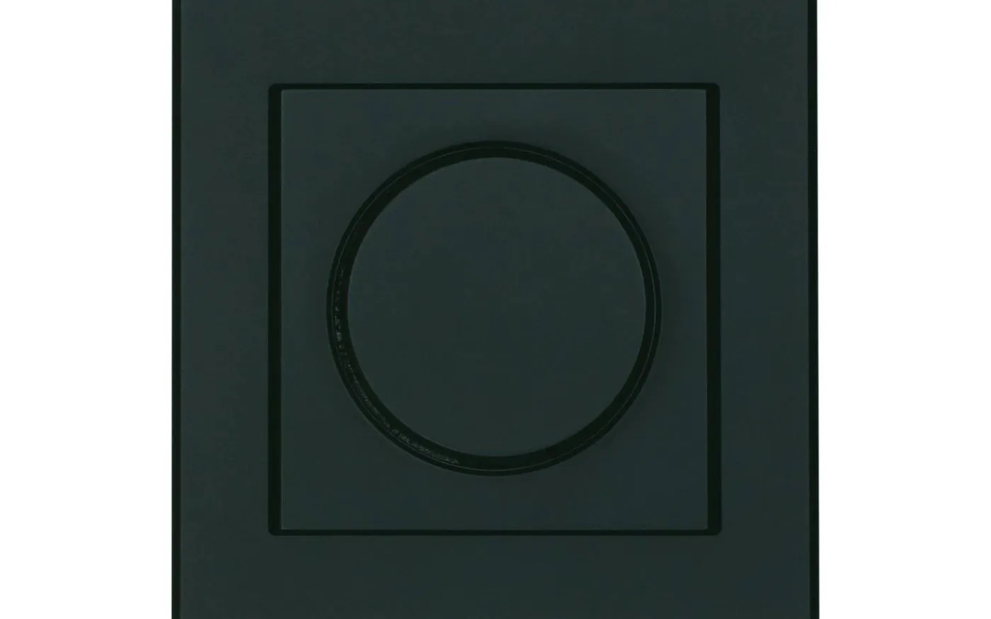 Triac-dimmer för glödljus- och halogenlaster. Framkantsstyrning. Finsäkring 2A. Infälld med tryckströmbrytare.