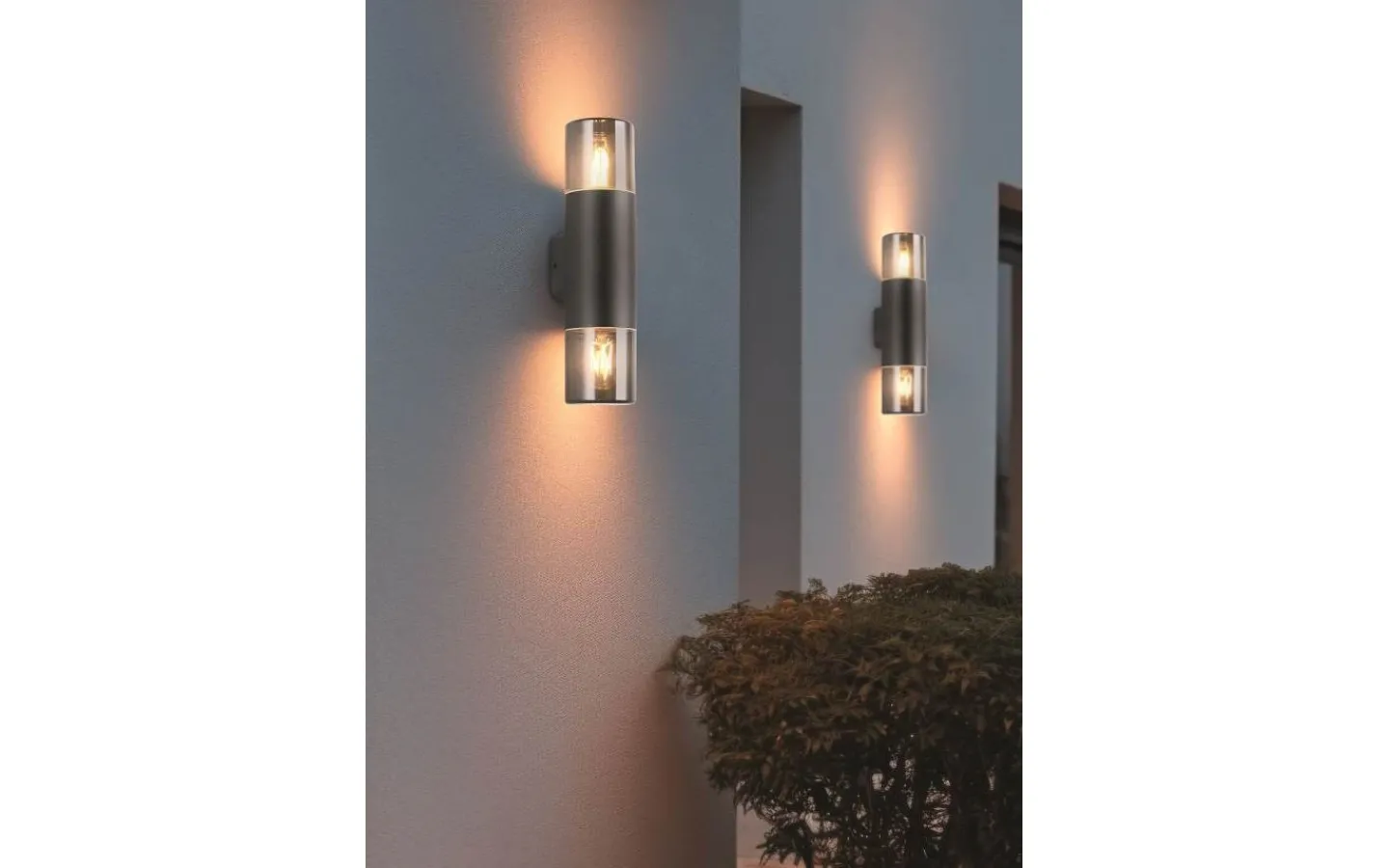 Dekorativ och funktionell – vägglampan från HOOSIC-serien med upp- och nerbelysning. I mörkret fäller vägglampan ut sin fulla effekt och strålar ut ljuset jämnt i utomhusområdet, vilket skapar en effektiv och behaglig ljusintensitet. Tack vare väderbeständig pressgjuten aluminium i kombination med skyddsklass IP44 är vägglampan idealisk för montering på husfasaden i entrén, på balkongen eller på din uteplats. Den svarta matta designen med rökfärgad plast kan kombineras på många olika sätt och säkerställer ett modernt utseende. För modern och pålitlig belysning rekommenderas användning av en LED-lampa. Den erbjuder hög ljuskvalitet, är mångsidig och övertygar med jämn belysning. Dess långa livslängd och låga värmeutveckling gör den till det perfekta valet för en mängd olika användningsområden. Ljuskälla: exklusivt 2x E27 · max. 28W. Extra information: IP44, Lampa(or) ingår ej, Upp- och nedbelysning, Väggmontering