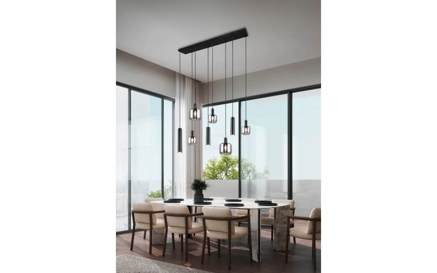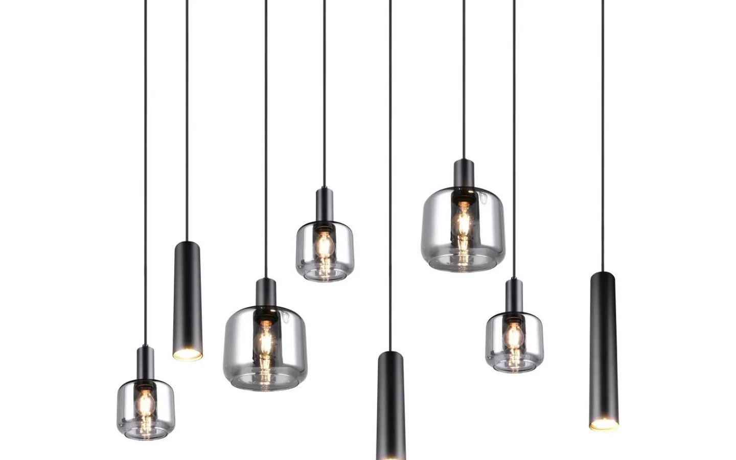 Trio Lighting Mataro Takpendel 8-delad mattsvart/förkromad* Avlånga Taklampor