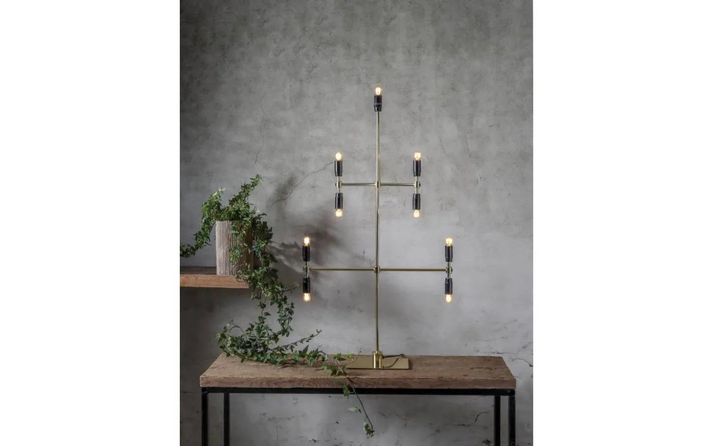 Twice ljusstake från Star Trading är en modern och rustik ljusstake i mässingsfärgad metall med dubbla lamphållare i svart. Denna ljusstaken kan du dekorera med till advent eller ha framme året runt som en fin inredningsdetalj.