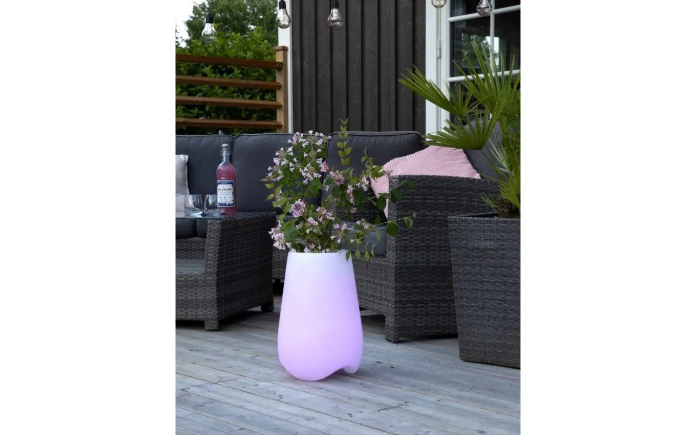 Dekorativt trädgårdskruka med RGB funktion från välkända Star Trading. Med hjälp av den medföljande fjärrkontrollen kan du enkelt välja mellan skiftande färger eller ett fast ljus på en färg.