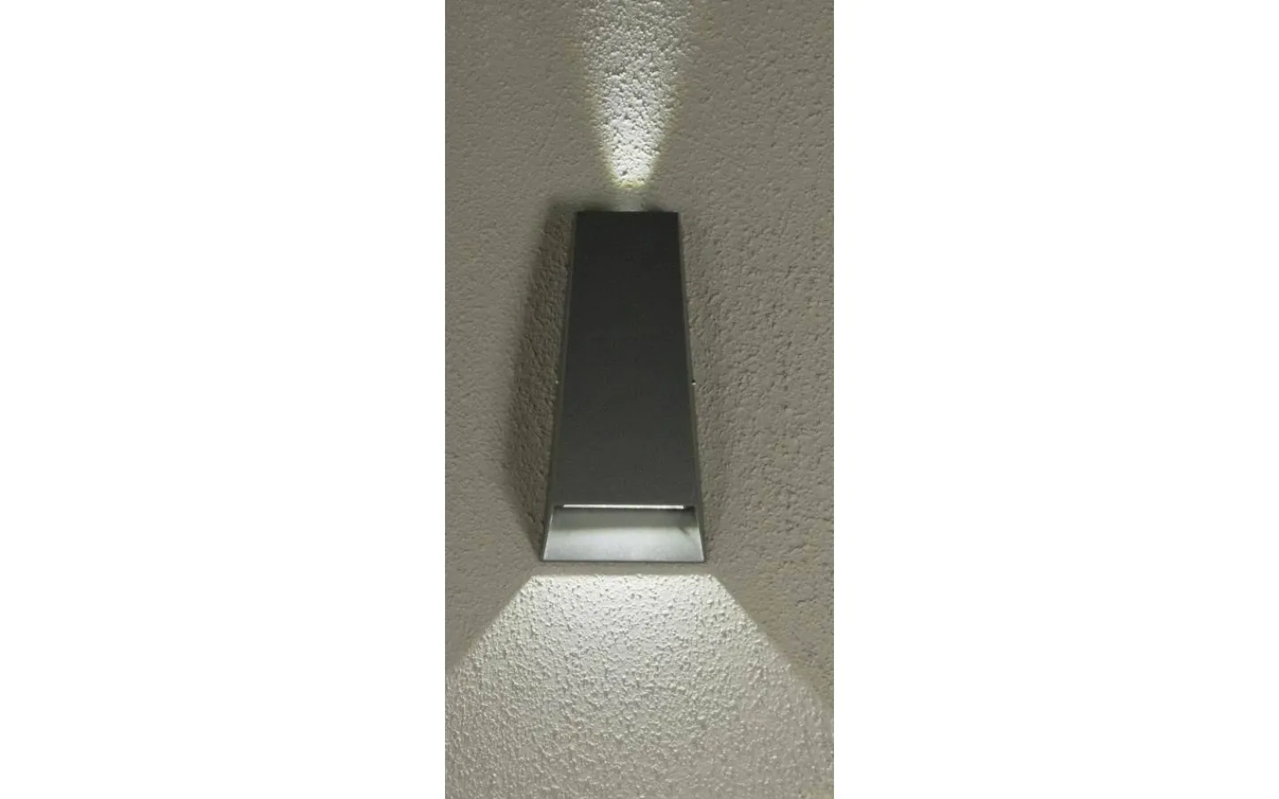 Rigel utomhuslampa i mörkgrå aluminiumfinisch som ger ett dekorativt mjukt upp och nedljus längs fasaden. Passar fint vid entrén eller garageuppfarten.