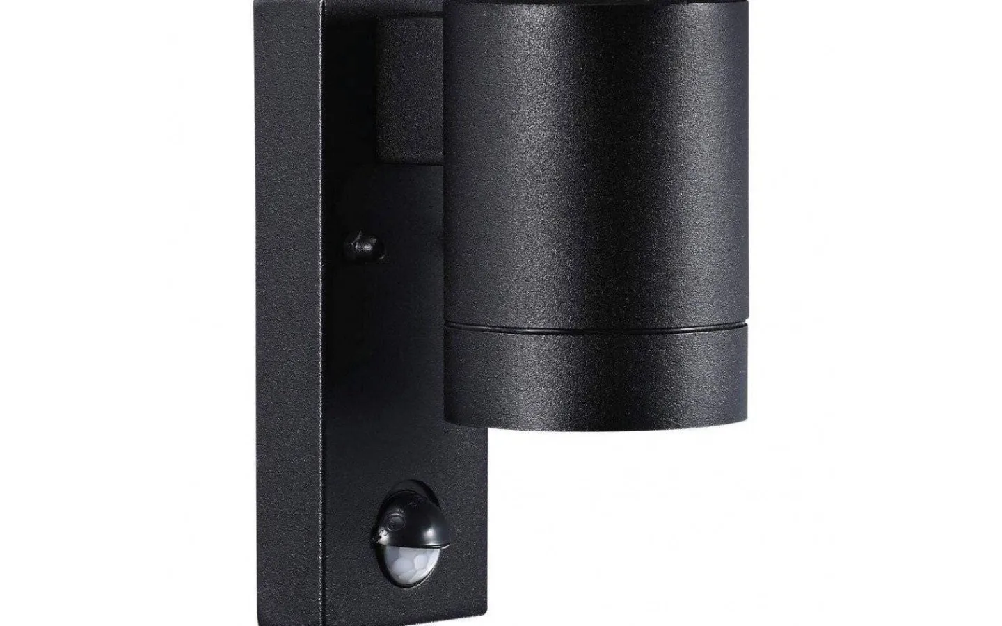 Tin vägglampa, från danska Nordlux, har inbyggd rörelsesensor och avger ett ljussken nedåt. En perfekt vägglampa att placera längs en mur, vid uppfarten eller på fasaden vid ytterdörren.