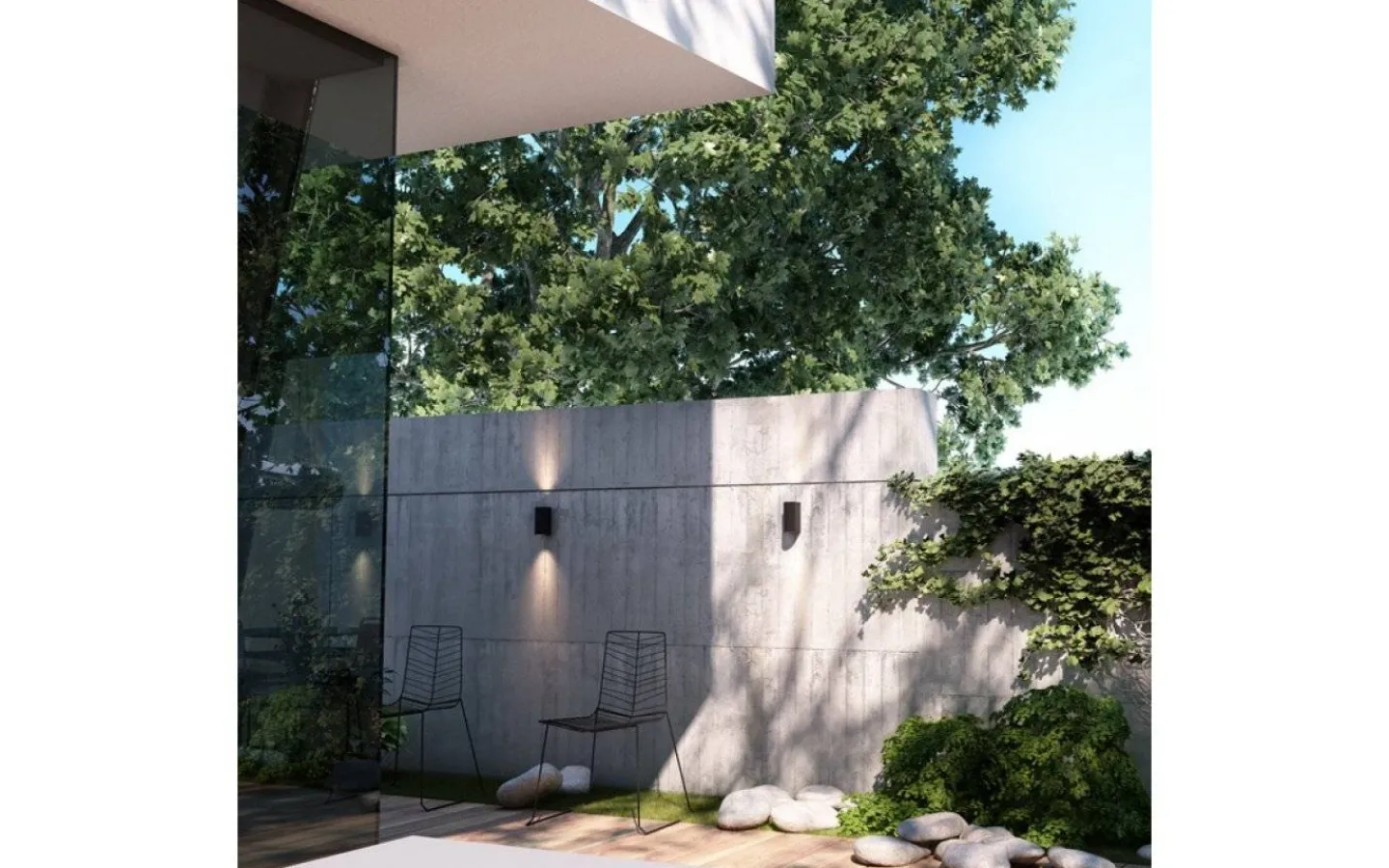 UP/DOWN vägglampa för utomhusbruk med två inbyggda 3W LED ljuskällor.