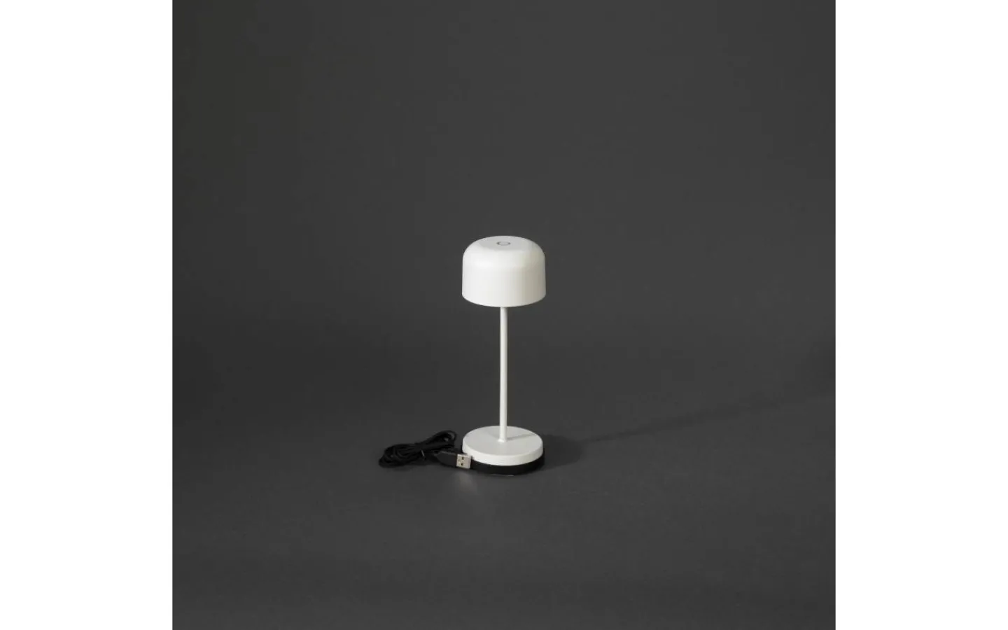 Lille uppladdningsbar bordslampa är en enkel och stilren bordslampa från välkända Konstsmide. Bordslampans inbyggda LED-ljus kan du enkelt reglera mellan 10 till 100 lumen. Du kan även reglera färgtemperaturen mellan 2200-2700K.