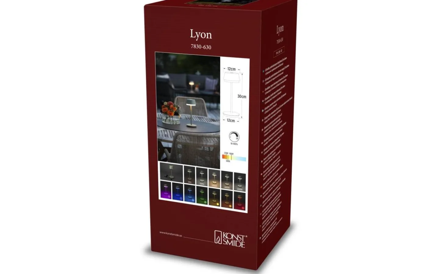 Lyon uppladdningsbar bordslampa är en enkel och stilren bordslampa från välkända Konstsmide. Bordslampans inbyggda LED-ljus kan du enkelt reglera mellan 10 till 120 lumen. Du kan även ställa färgtemperaturen mellan 2700K, 3000K och 4000K. Bordslampan har RGB funktion vilket innebär att du även kan ställa in den på färg.