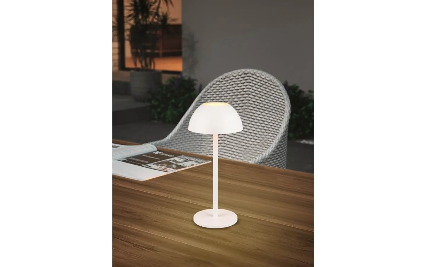 Den mobila LED-uppladdningsbara lampan RICARDO kombinerar design och funktionalitet och är den perfekta följeslagaren där ljus behövs. Det nedåt- och uppåtriktade, bländfria ljuset badar vilken miljö som helst i en mjuk, atmosfärisk atmosfär. Den integrerade touchfunktionen kan användas för att justera ljusintensiteten i tre ljusstyrkenivåer för att passa situationen. Tack vare sin IP54-skyddsklassning är den även lämplig för utomhusbruk. Dess minimalistiska svampformade design och moderna mattvita färg gör bordslampan till ett iögonfallande dekorativt element. Dessutom har armaturerna modern LED-teknik, vilket står för hög ljuskvalitet. LED-ljuskällor kännetecknas av lång livslängd och låg värmeutveckling. Ljuskälla: inklusive 1x SMD, 1,7W · 1x 240lm, 3000K. Extra information: 4-nivå pekfunktion, IP54, drivs med laddningsbart batteri, upp- och nerbelysning, USB-anslutning