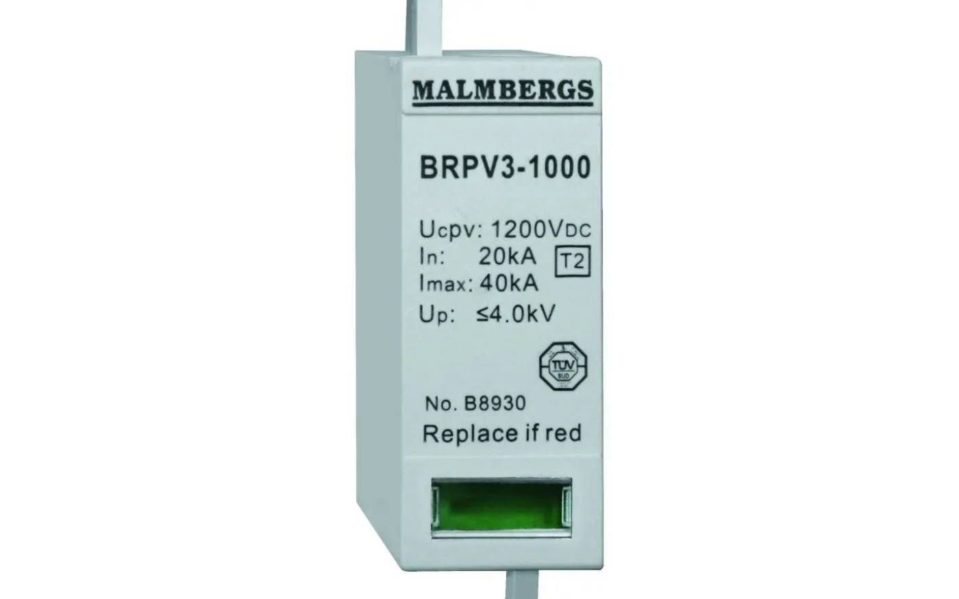 Utbytespatron till överspänningsskydd för 1000V (DC). Vid röd indikering har patronen löst ut och måste bytas. Passar till 5271705.