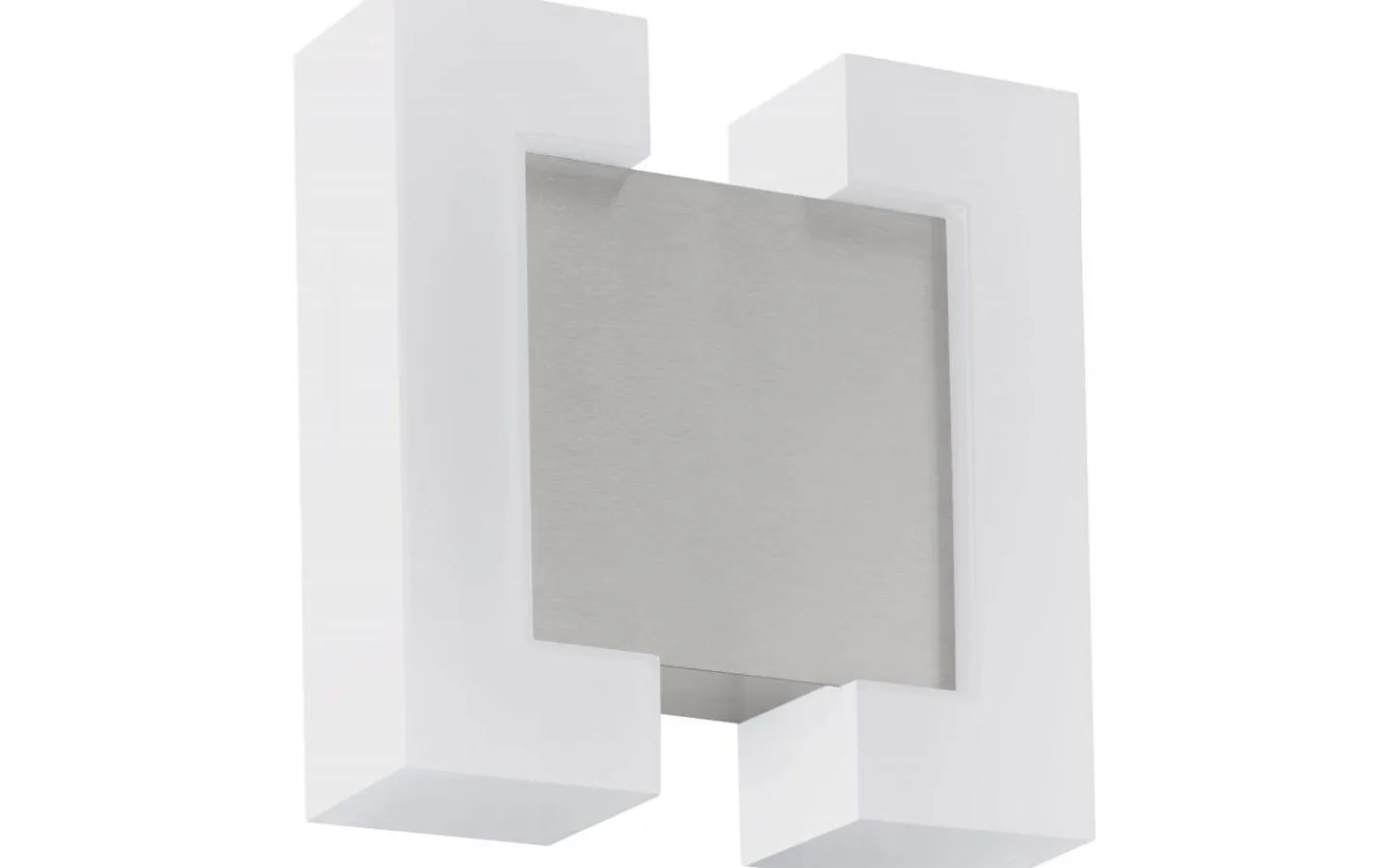 SITIA exteriör LED-vägglampa har en fyrkantig, zinkpläterad metallstomme i matt nickelfinish. På sidorna sitter två U-formade ljuspaneler av vit plast, som fördelar ljuset jämnt och ger produkten ett modernt utseende. De integrerade lysdioderna ger ett behagligt varmvitt ljus. Lampan är lämplig för utomhusbruk tack vare sitt IP44-skydd mot sprutvatten. Vägglampan har en minimalistisk design som smälter in i alla moderna utomhusutrymmen och är den perfekta ytterväggslampan för husentréer, terrasser eller en balkong.